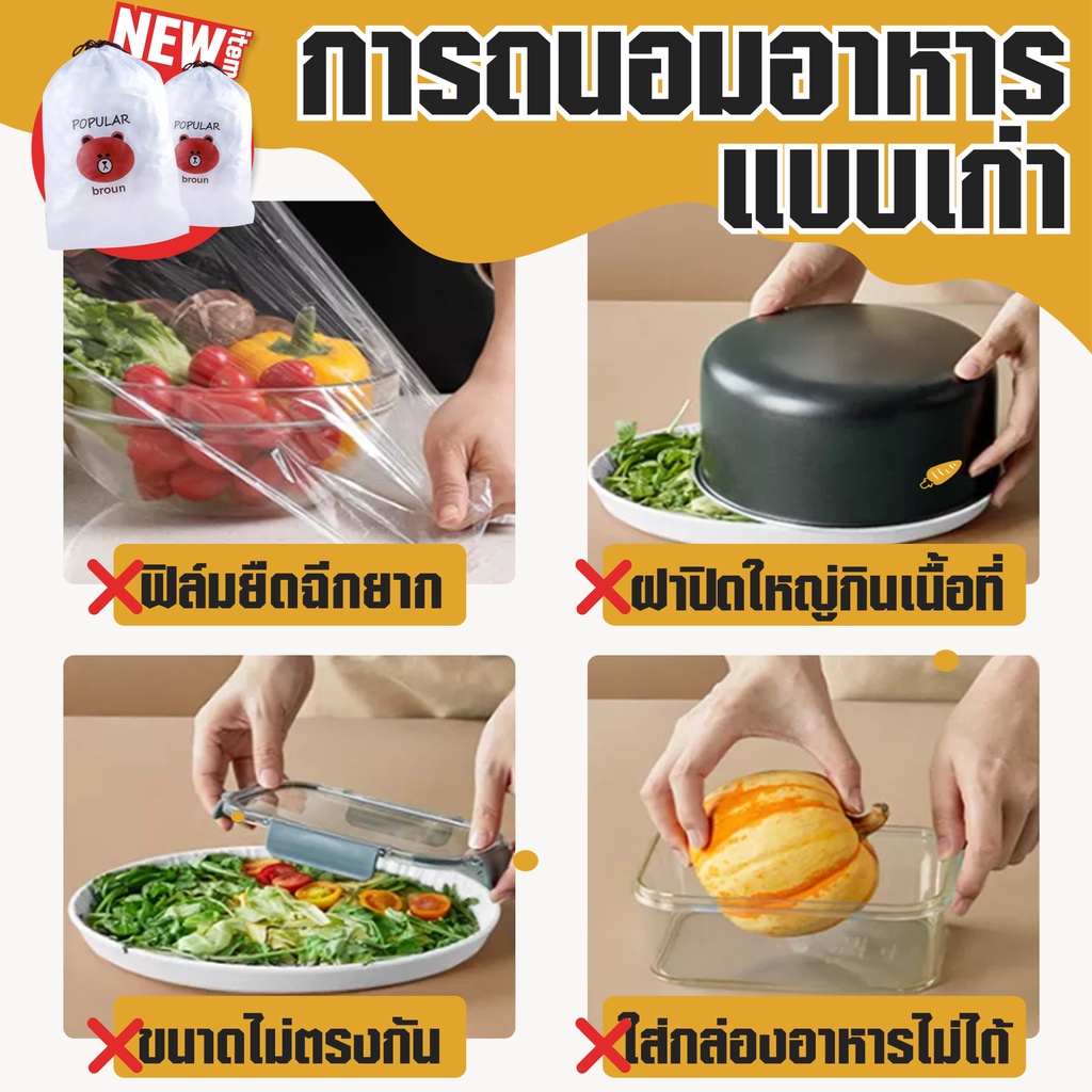ถุงฟิล์มห่อถนอมอาหาร 100 ชิ้นต่อถุง สำหรับอาหารสด ผลไม้สด