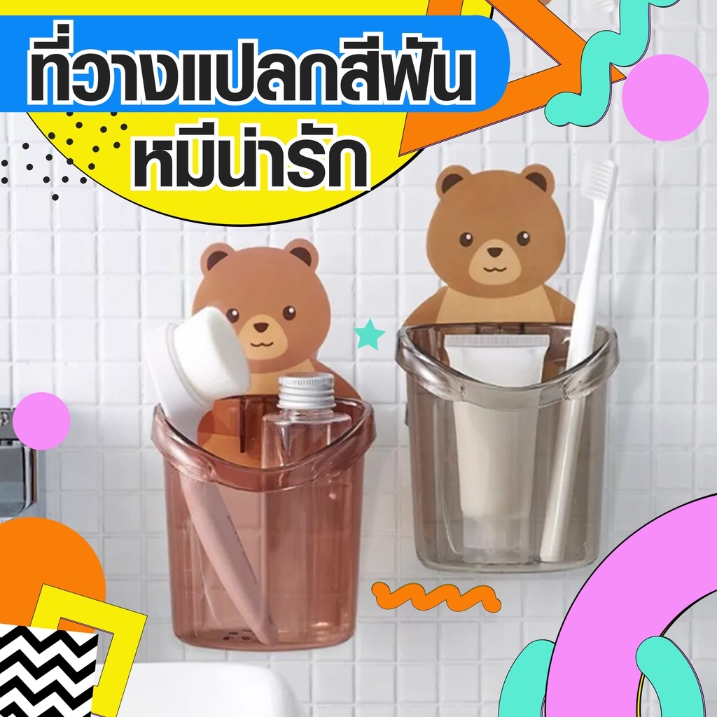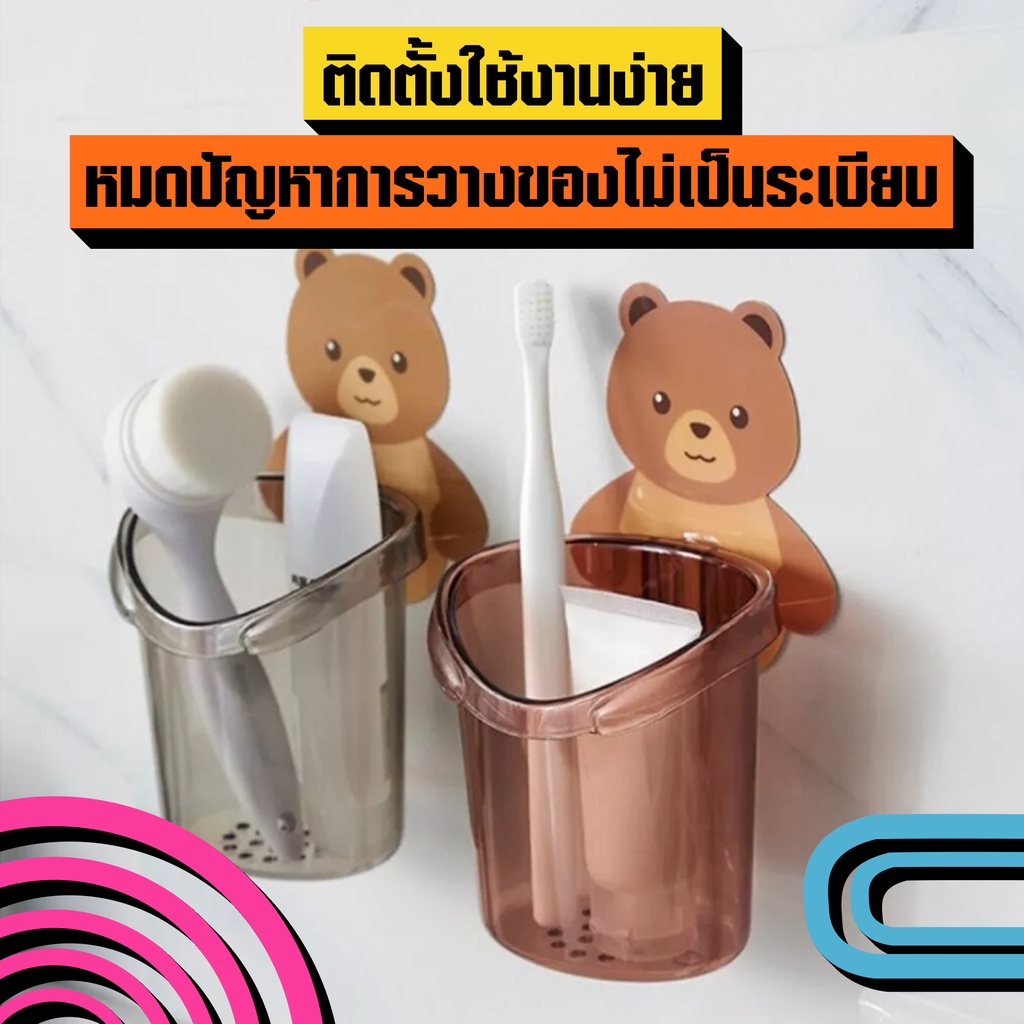 ที่วางแปรงสีฟัน ยาสีฟัน แบบติดผนัง ที่วางยาสีฟันหมีน้อย ที่แขวนแปรง กล่องเก็บอุปกรณ์อาบน้ำ