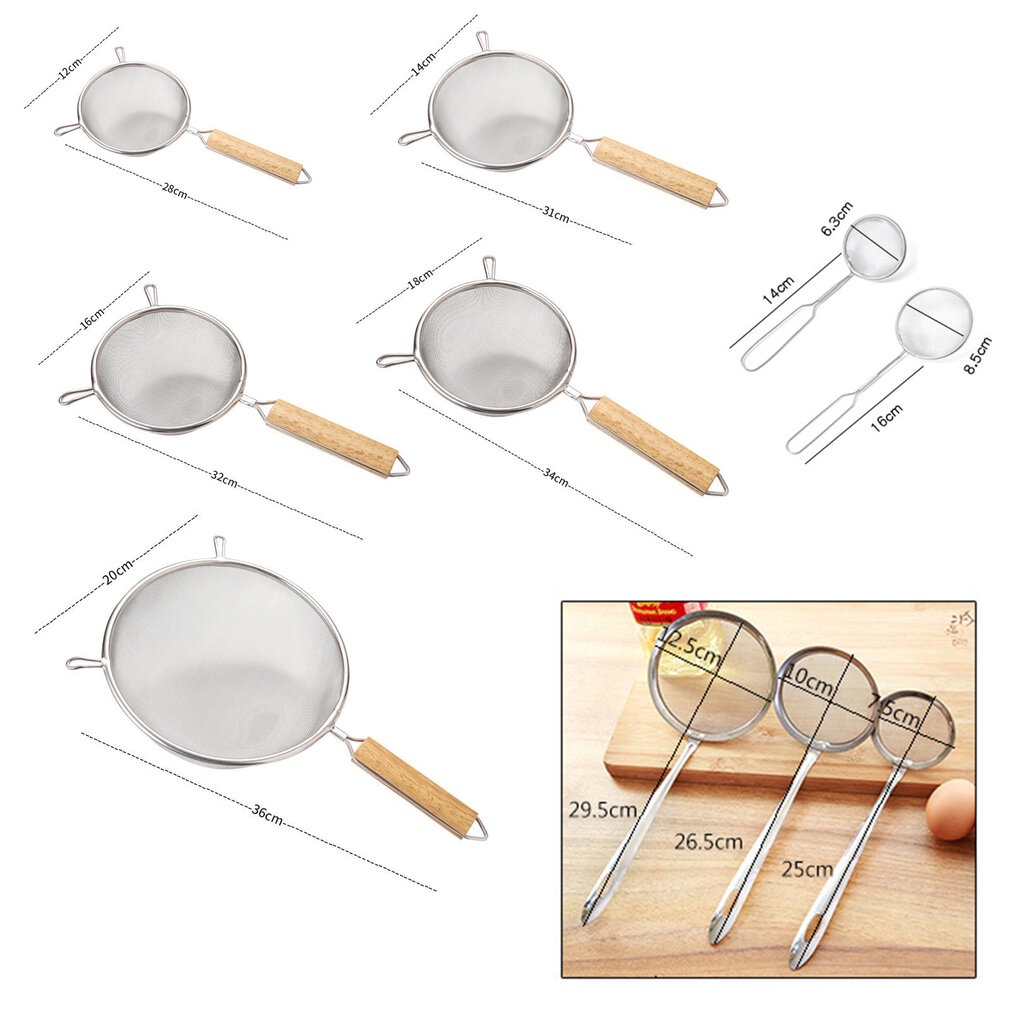 กระชอนกรอง สแตนเลส304 มี4รุ่น ด้ามจับไม้ / ด้ามลวด / ด้ามแบน / ด้ามคีบ มีให้เลือก หลายขนาด