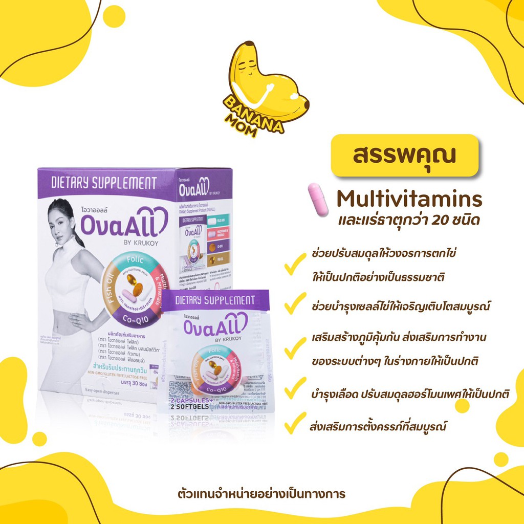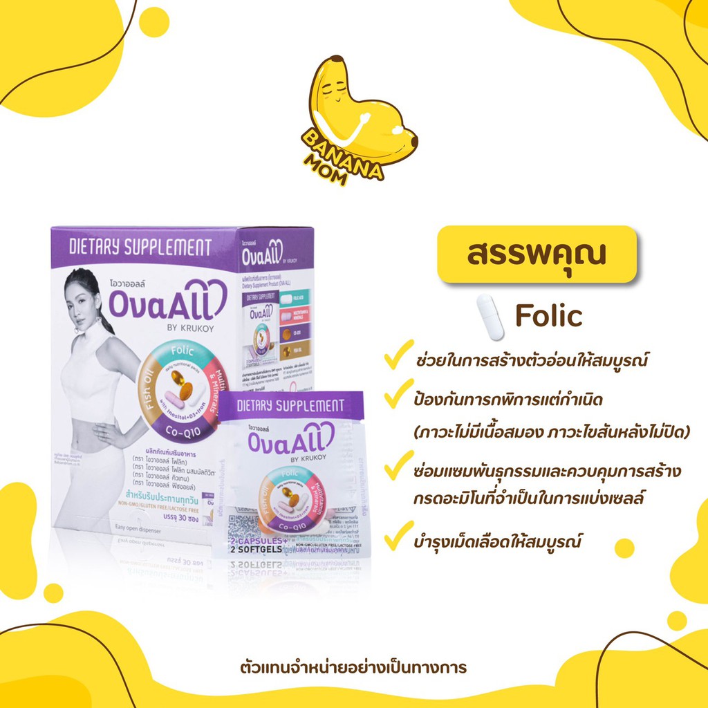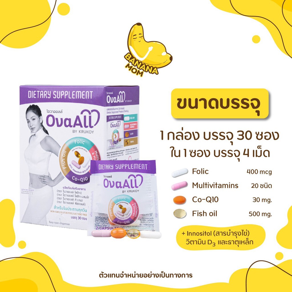 🍌Bananamom | OvaAll | 1 กล่อง 30 ซอง | อาหารเสริม วิตามิน บำรุงไข่ โฟลิค บานาน่ามัม ครูก้อย