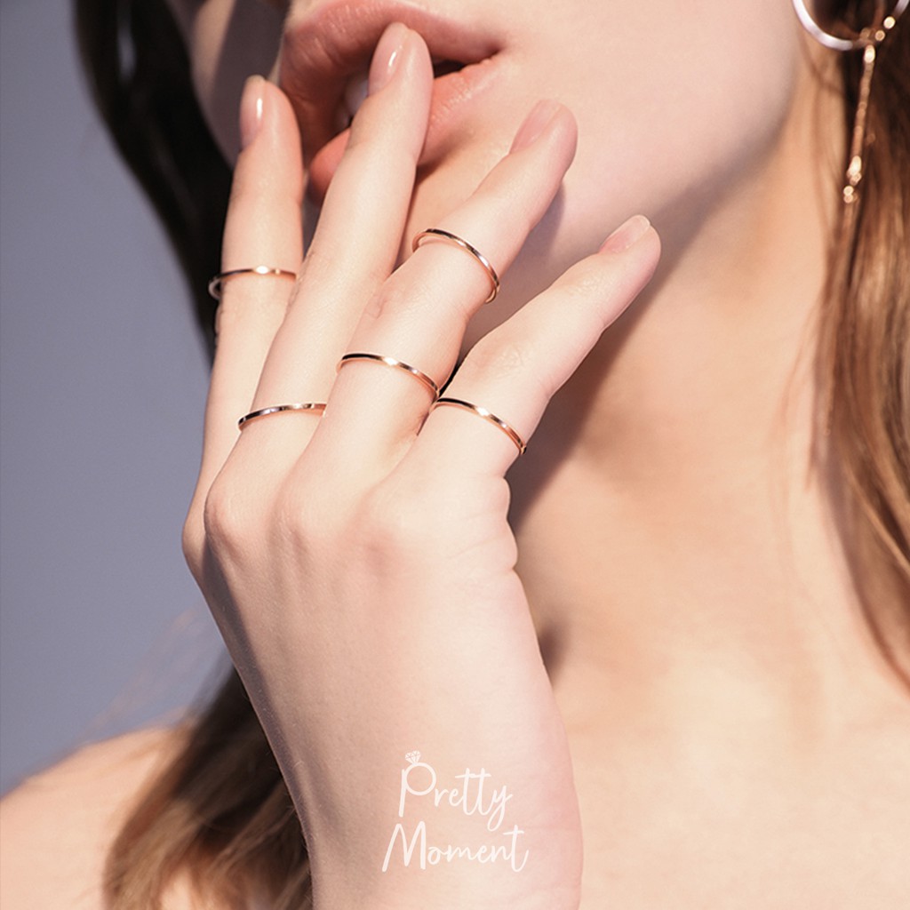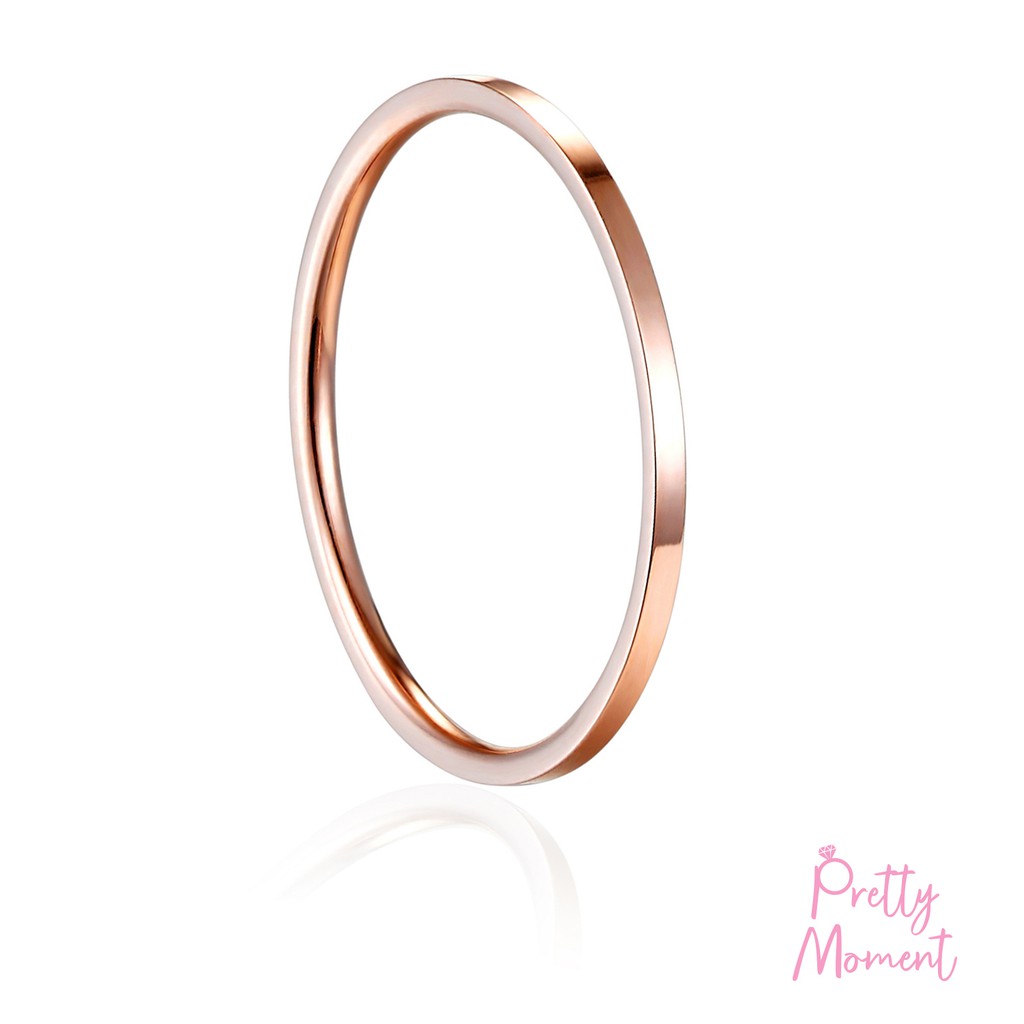 Pretty Moment แหวนนิ้วก้อย แหวนความรัก และ การเงิน บาง 1 mm แบบเหลี่ยม สแตนเลส ไม่บิด ไม่เบี้ยว แข็งแรง ทนทาน ของขวัญ