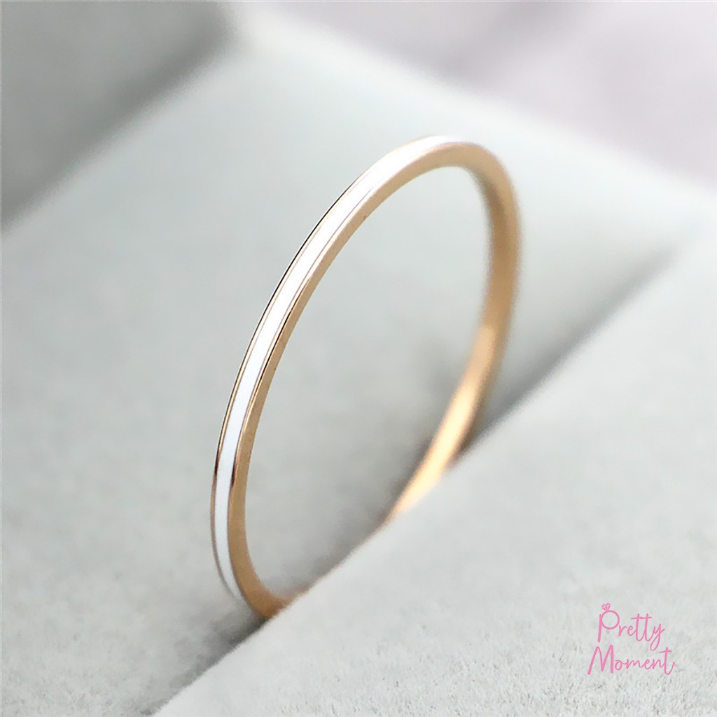 Pretty Moment แหวน 3 สี ขาว แดง ดำแหวนนิ้วชี้ การงาน เจริญก้าวหน้า แหวนสามสี บาง 1 mm สแตนเลส โดนสารเคมีได้
