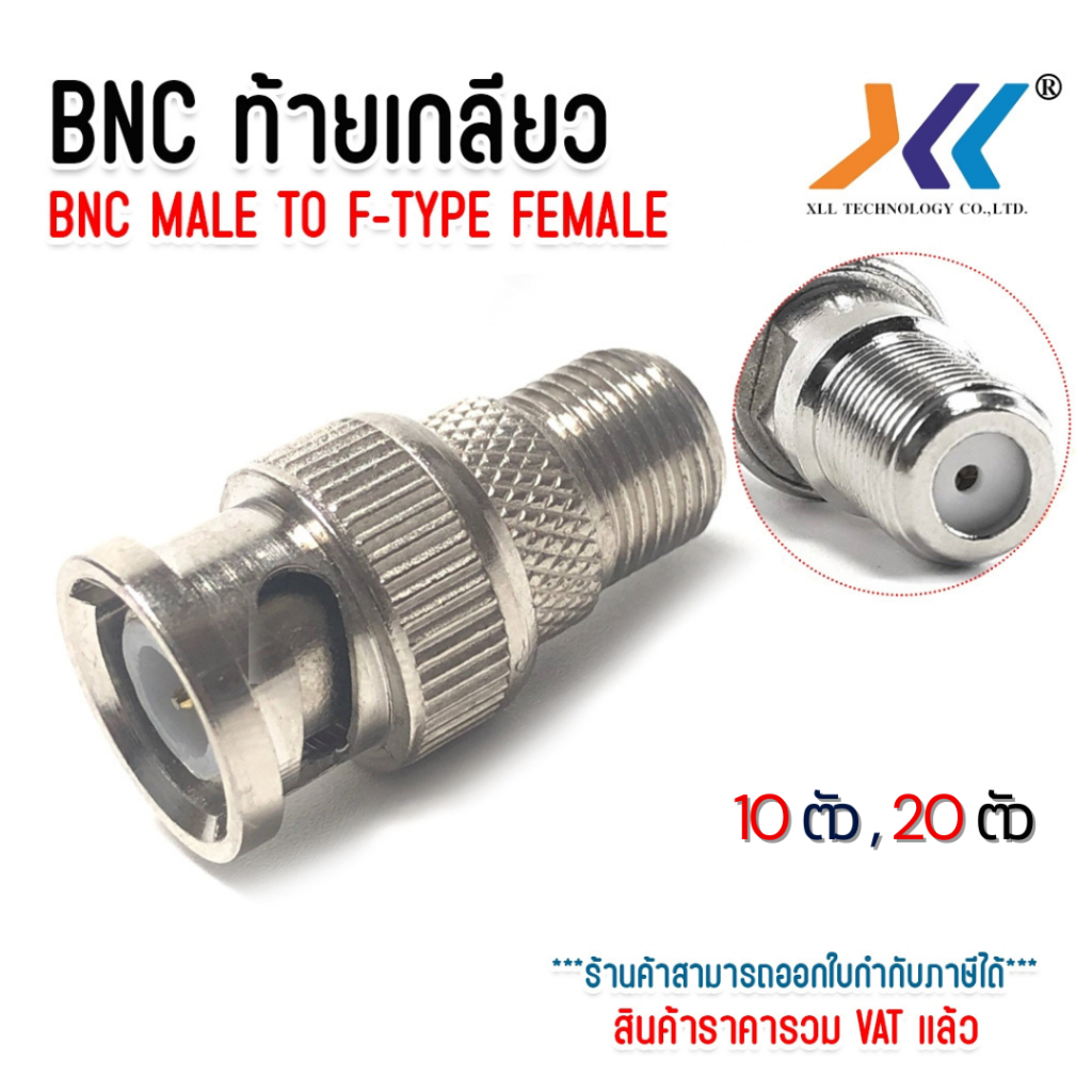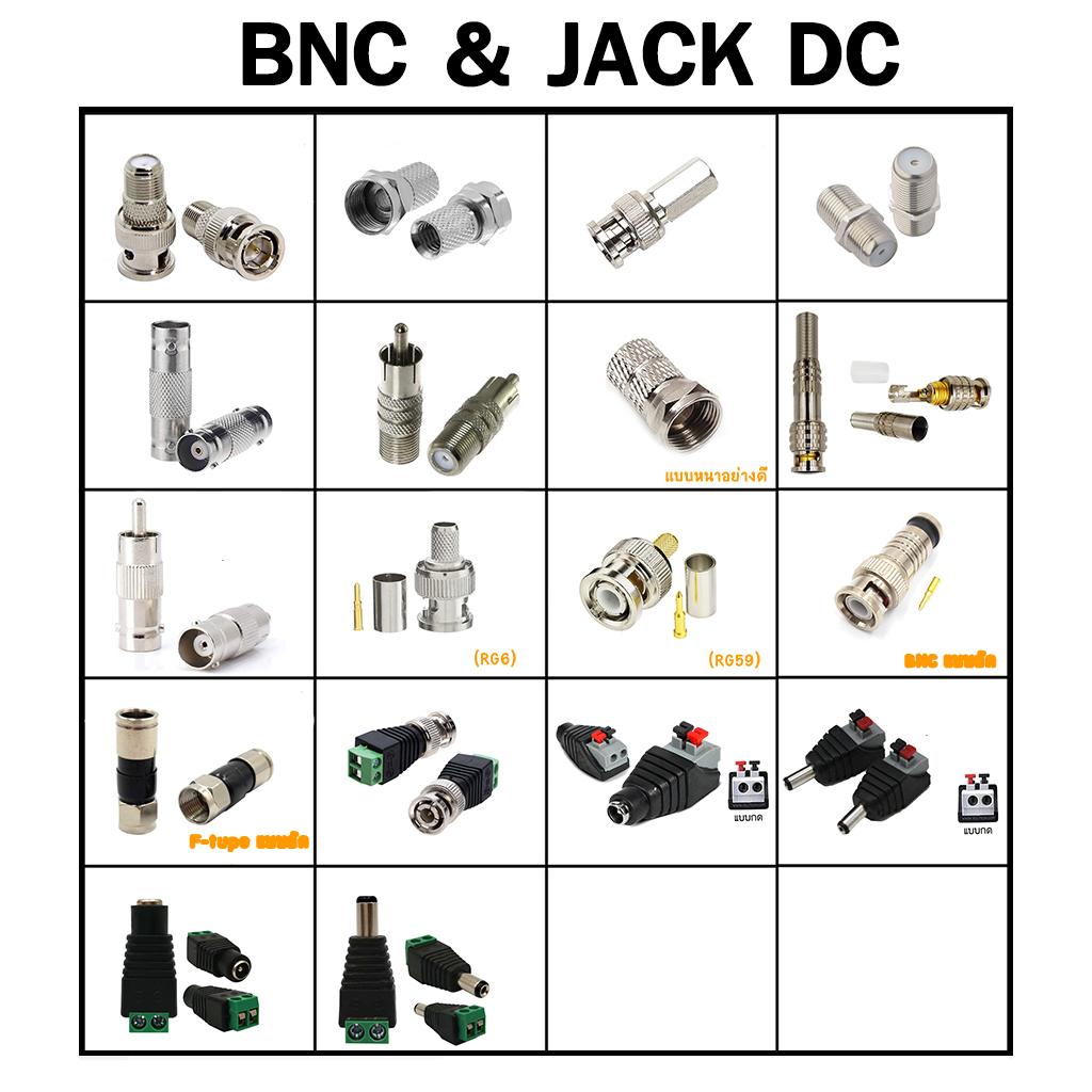 BNC ท้ายเกลียว ต่อตรง RCA แบบบีบ แบบอัด F-TYPE JACK เกลียวใน หกเหลี่ยม RG6 กล้องวงจรปิด 10ตัว 20ตัว