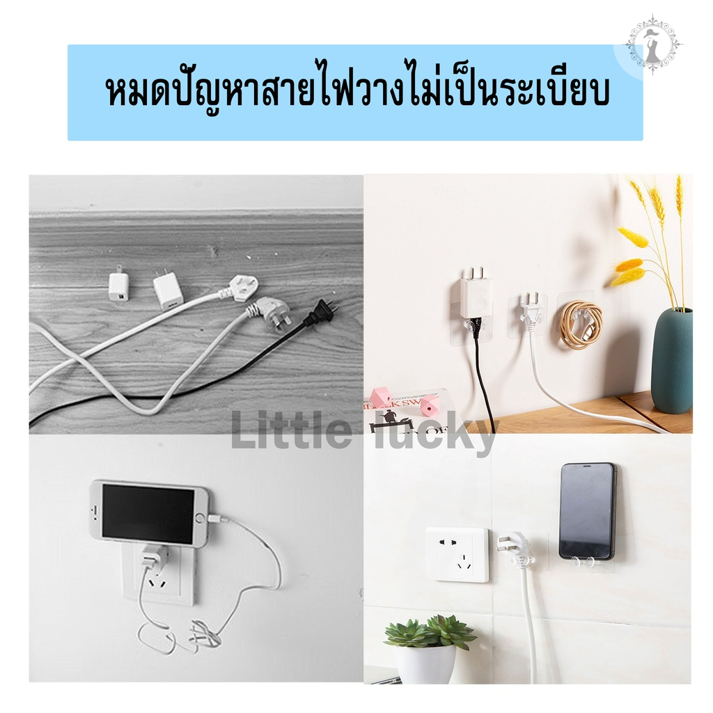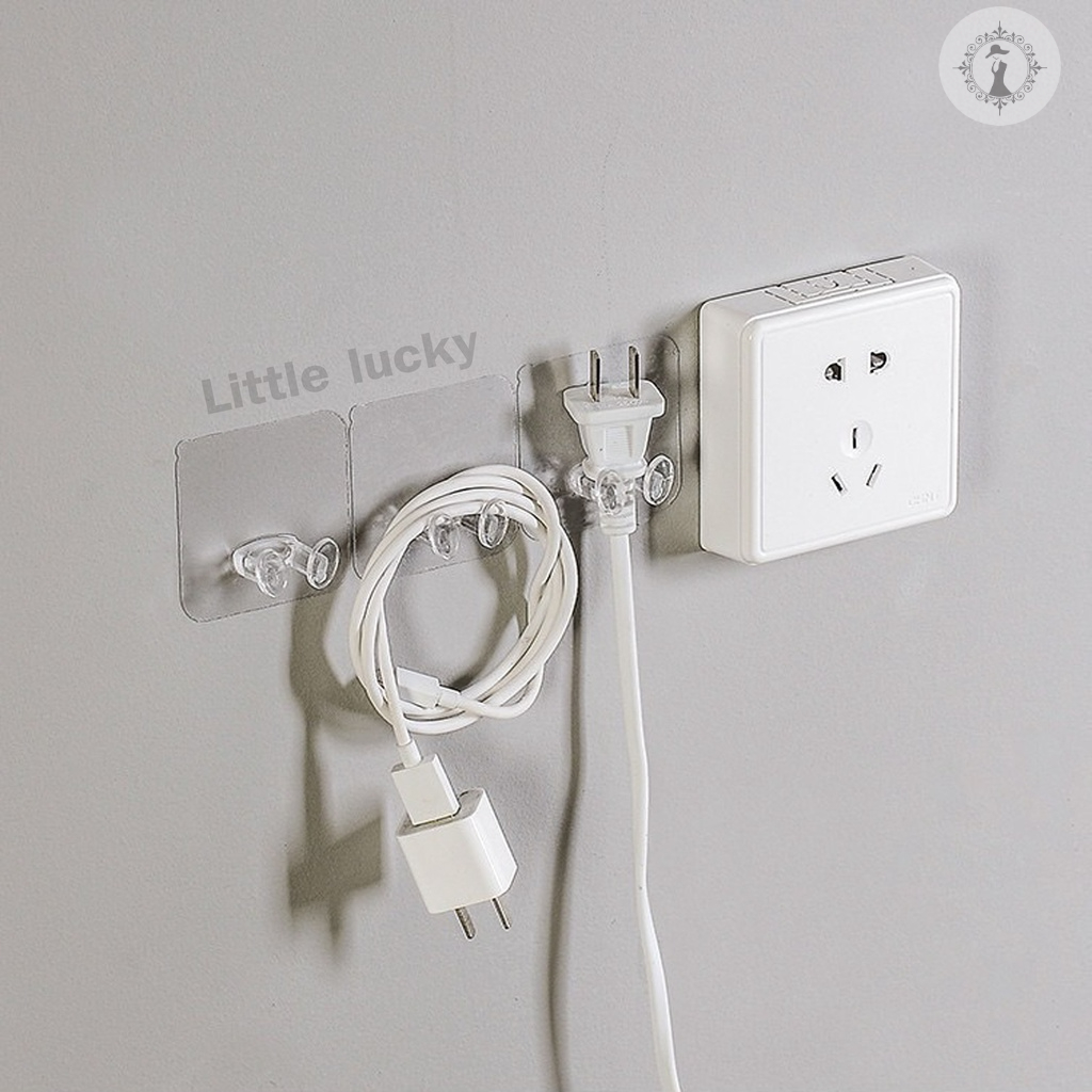 ตะขอเกี่ยว 2 ขา ตะขอเก็บสายไฟ ตะขอคริสตัล ตัวช่วยจัดระเบียบสายไฟ แบบใสไร้รอยต่อ ติดกาวไม่ต้องเจาะผนัง