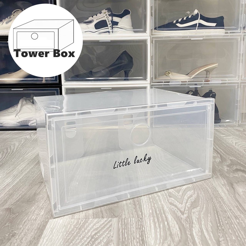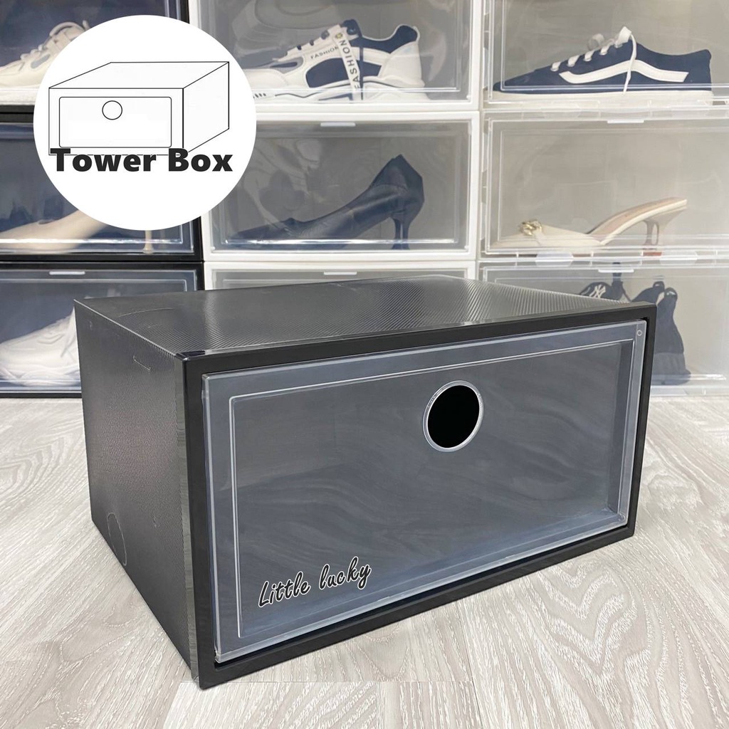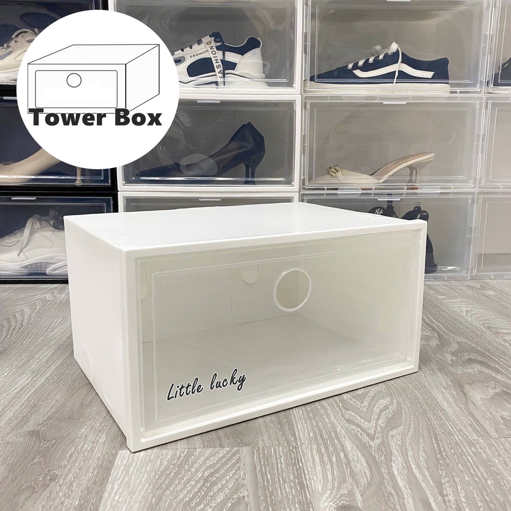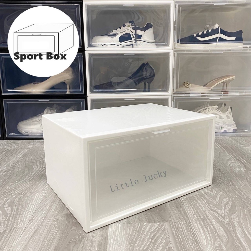 กล่องรองเท้าฝาข้าง กล่องเก็บของ แบบฝาข้าง กล่องอเนกประสงค์ ฝาเปิด-ปิด พร้อมรูระบายอากาศ วา งซ้อนต่อกันได้