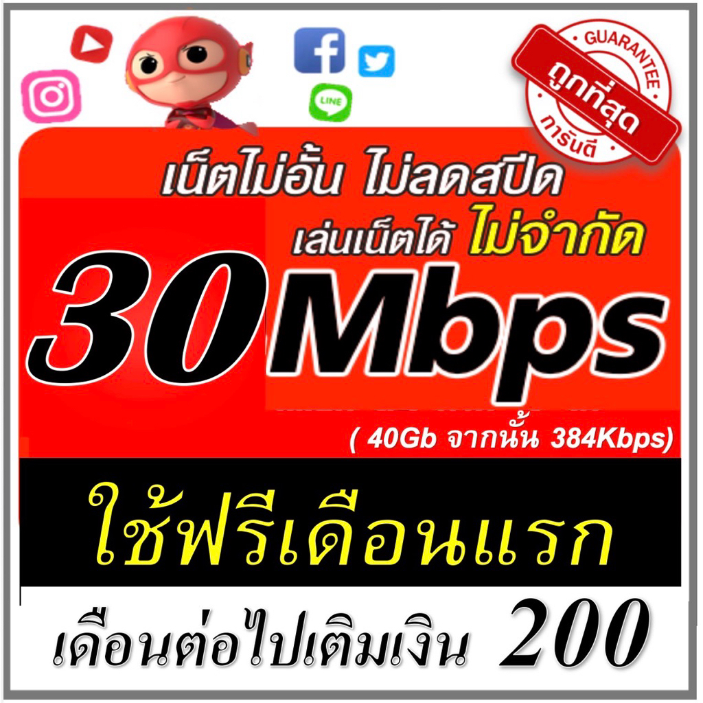 (ใช้ฟรีเดือนแรก) ซิมเน็ตไม่อั้น 4Mbps 15Mbps 20Mbps ใช้ฟรีเดือนแรก