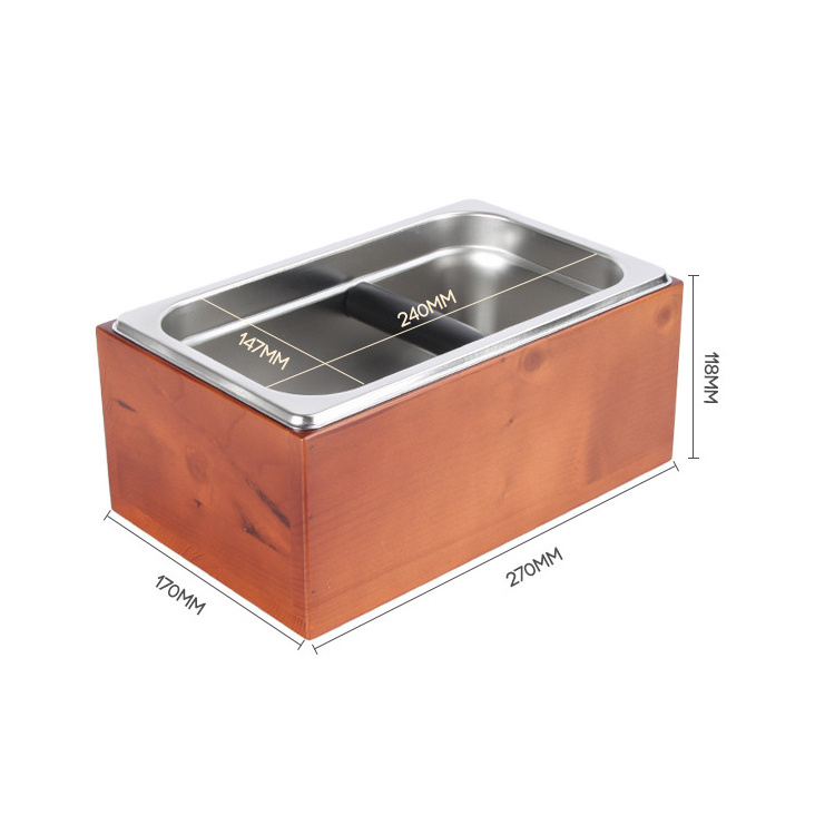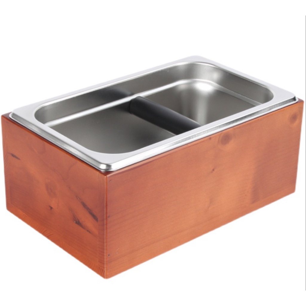 ถังเคาะกากกาแฟ อุปกรณ์กาแฟกล่องเคาะกากกาแฟสแตนเลสกล่องไม้แท้