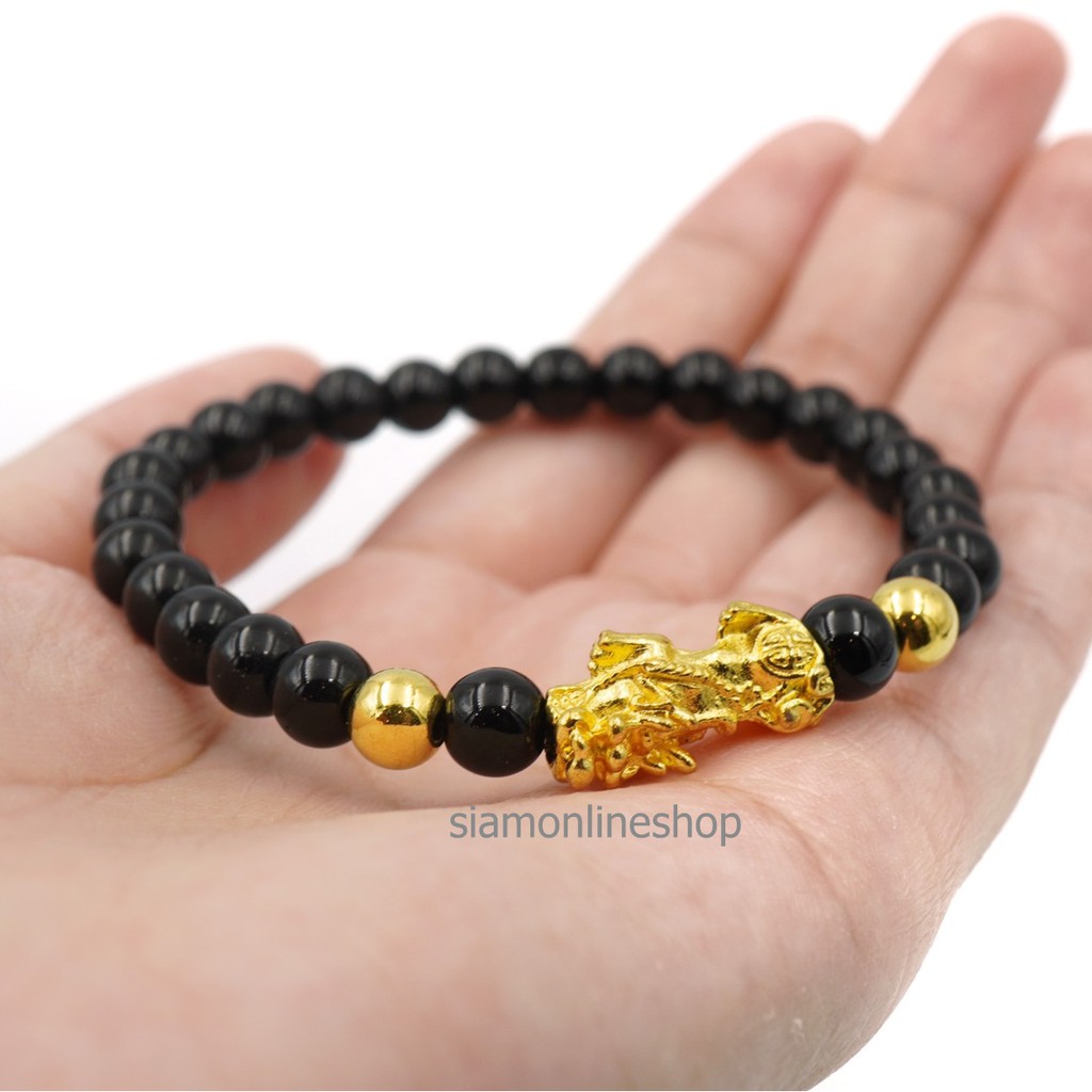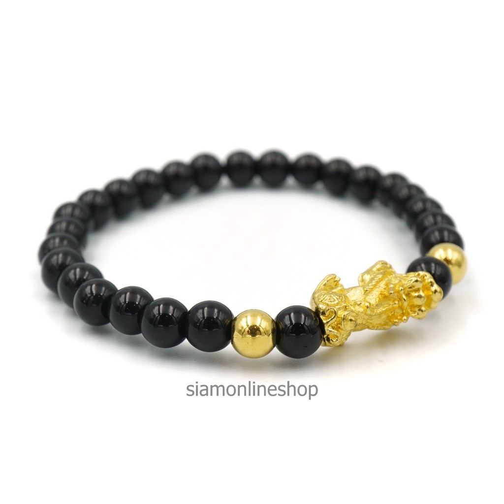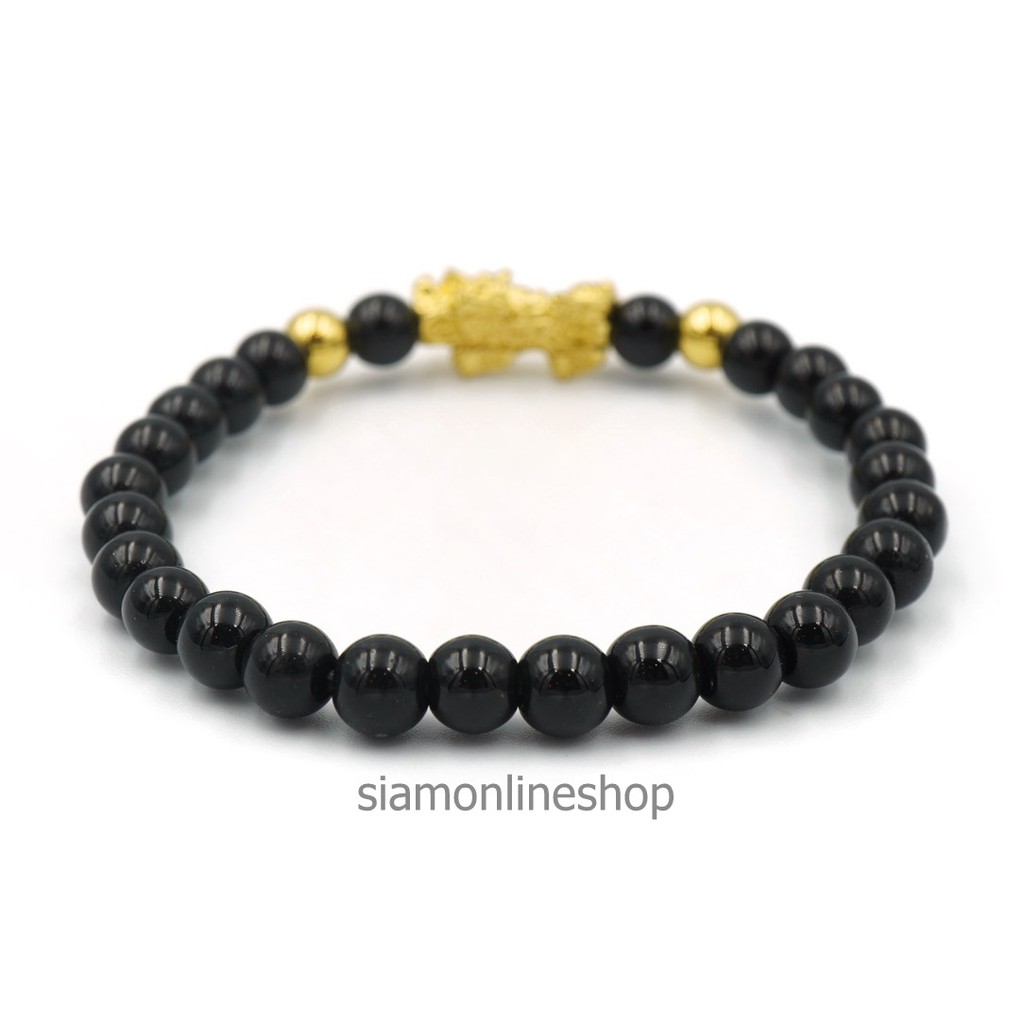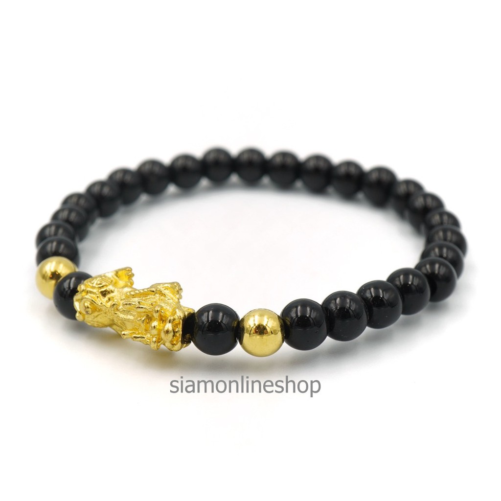 Pixiu Pi Yao ปี่เซียะเรียกทร้พย์ สร้อยข้อมือ สีดำ-ทอง ขนาด 5 มม. by siamonlineshop