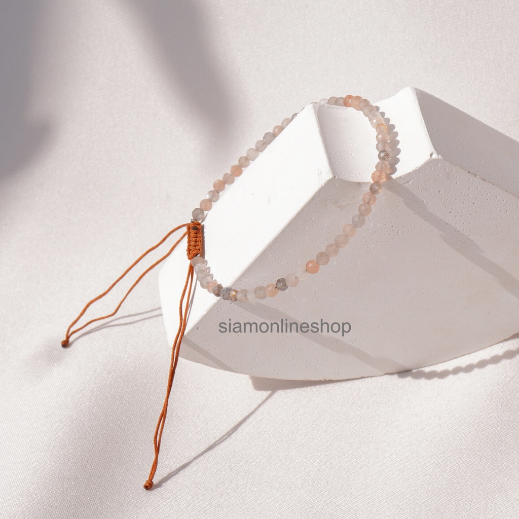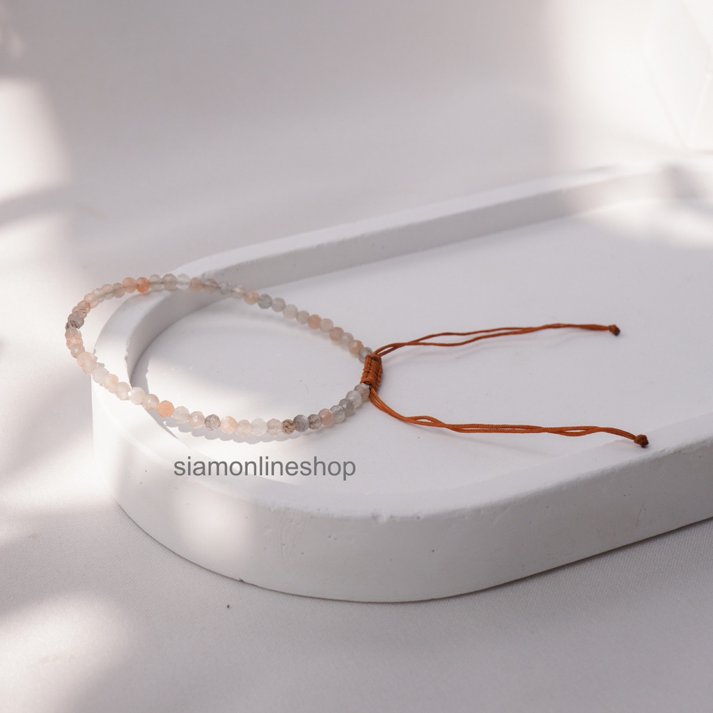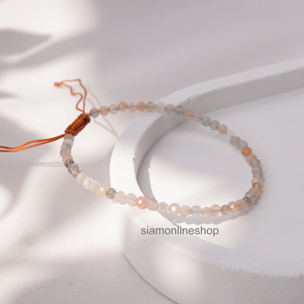 Minimalist bracelet - Moonstone หินมูนสโตน ขนาด 3 มม. สร้อยข้อมือ เชือกถัก by siamonlineshop