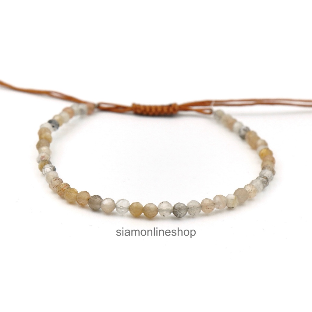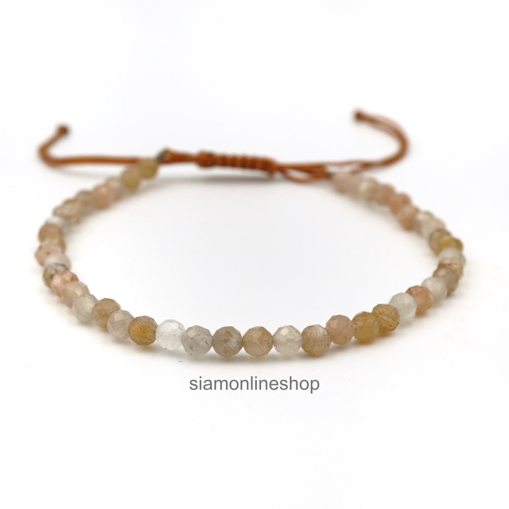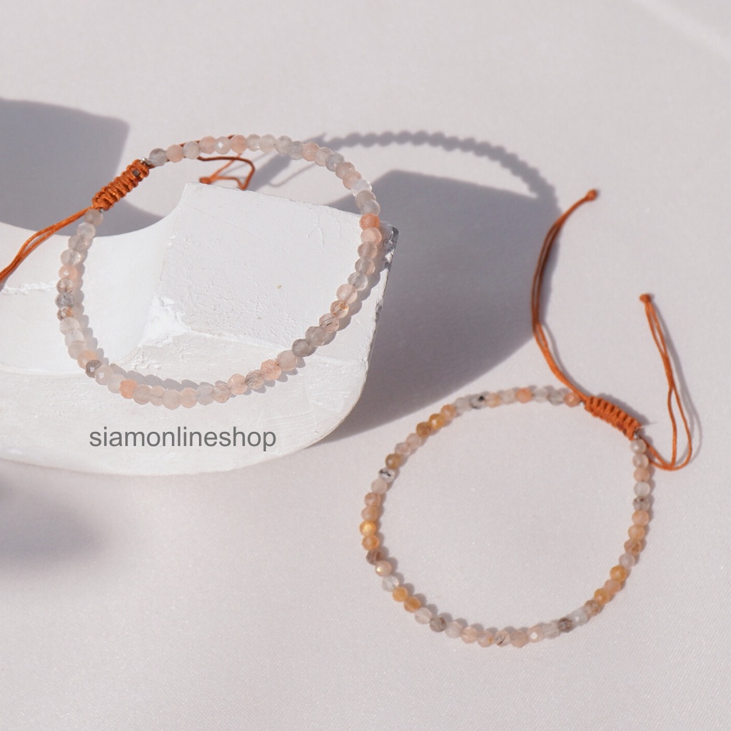 Minimalist bracelet - Moonstone หินมูนสโตน ขนาด 3 มม. สร้อยข้อมือ เชือกถัก by siamonlineshop