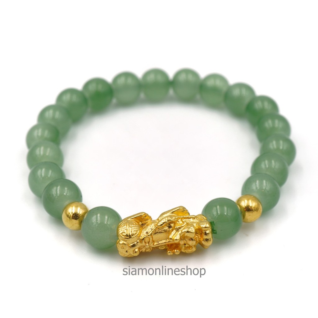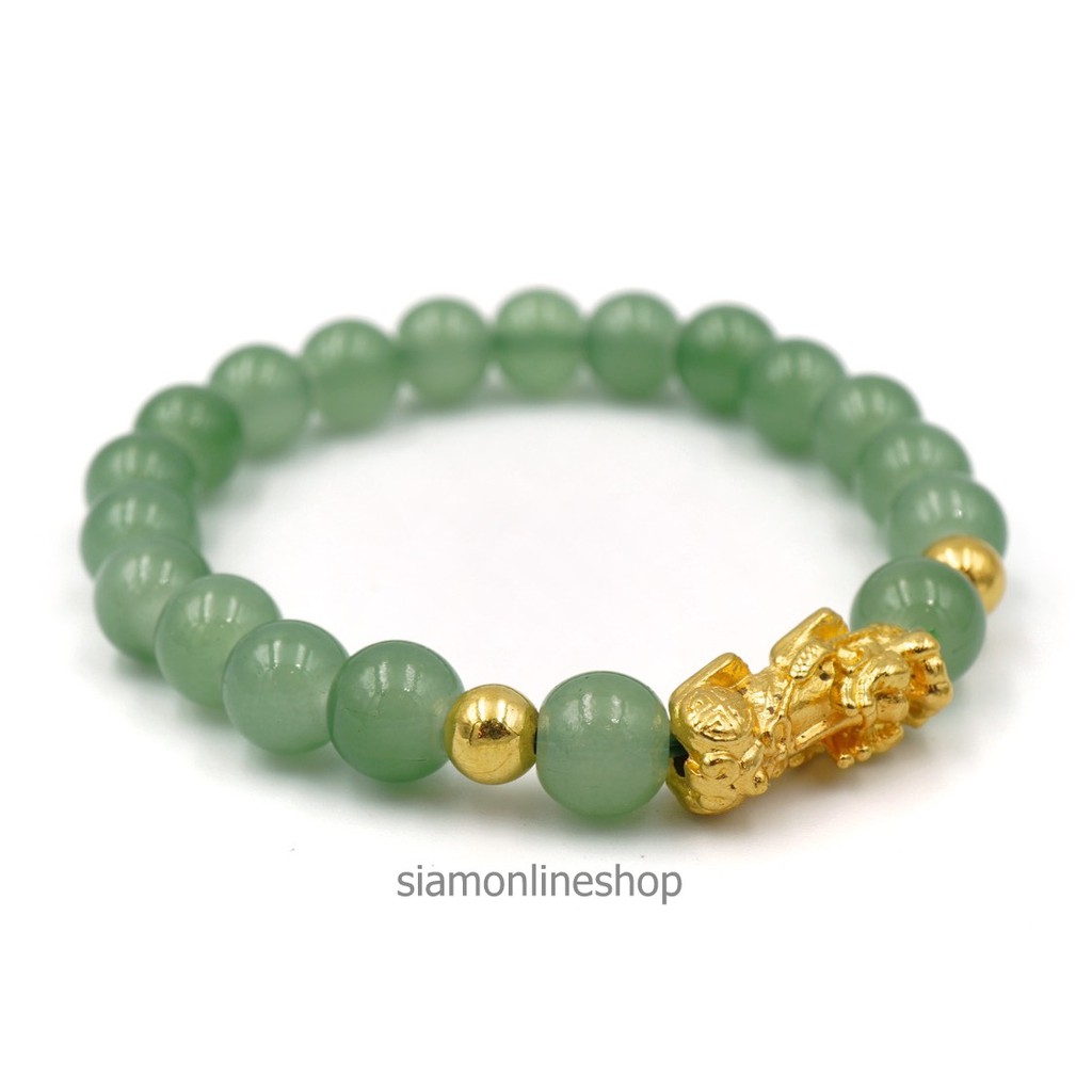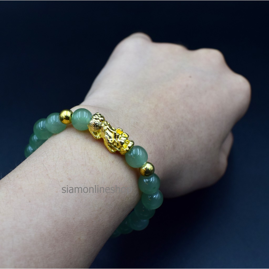 Pixiu ปี่เซียะเรียกทร้พย์ สีฟ้าเขียว ขนาด 7 มม. สร้อยข้อมือหินแท้ by siamonlineshop