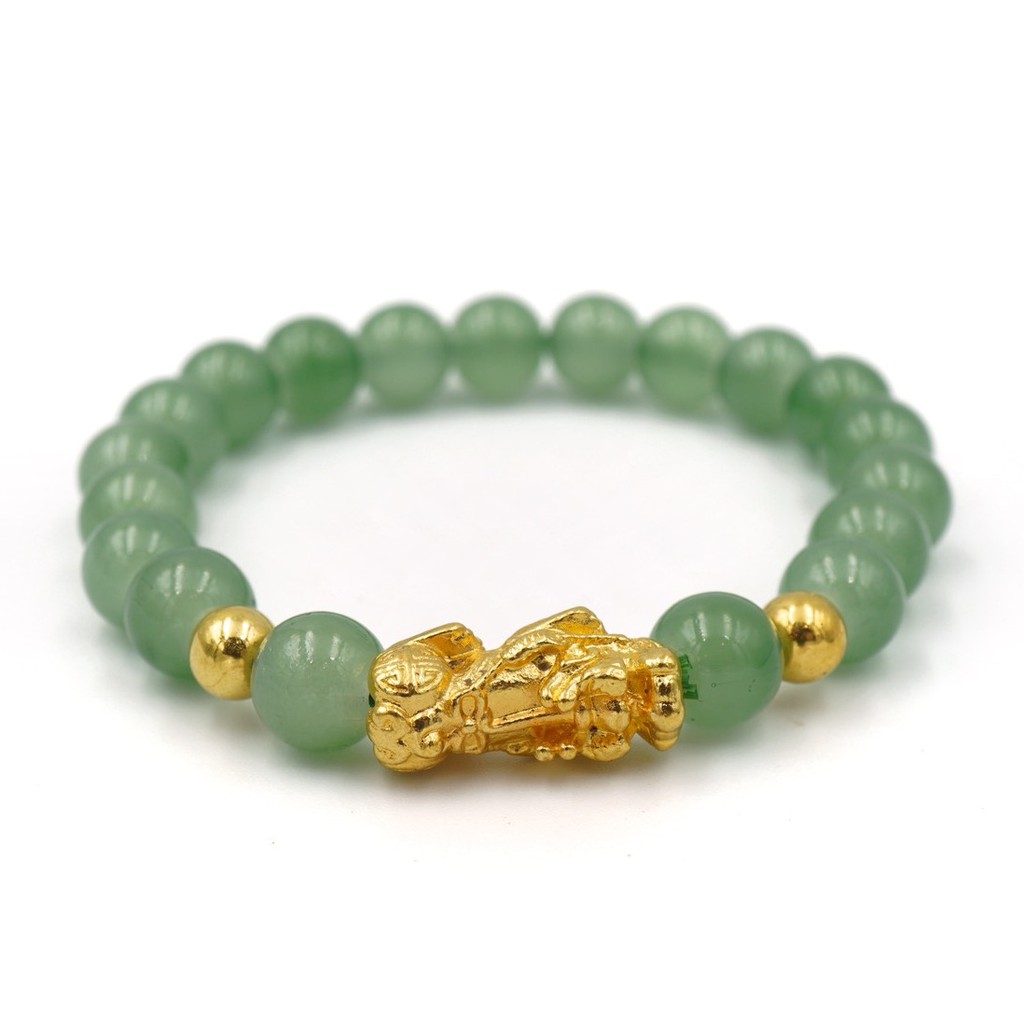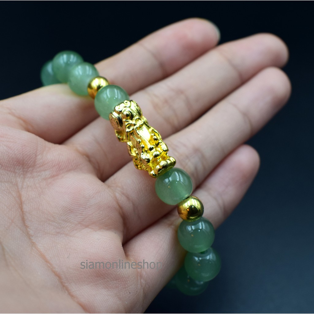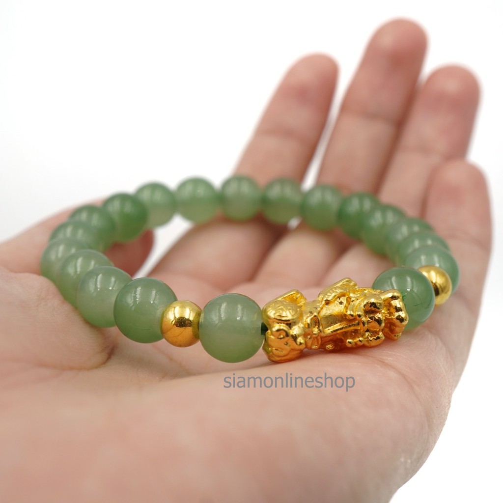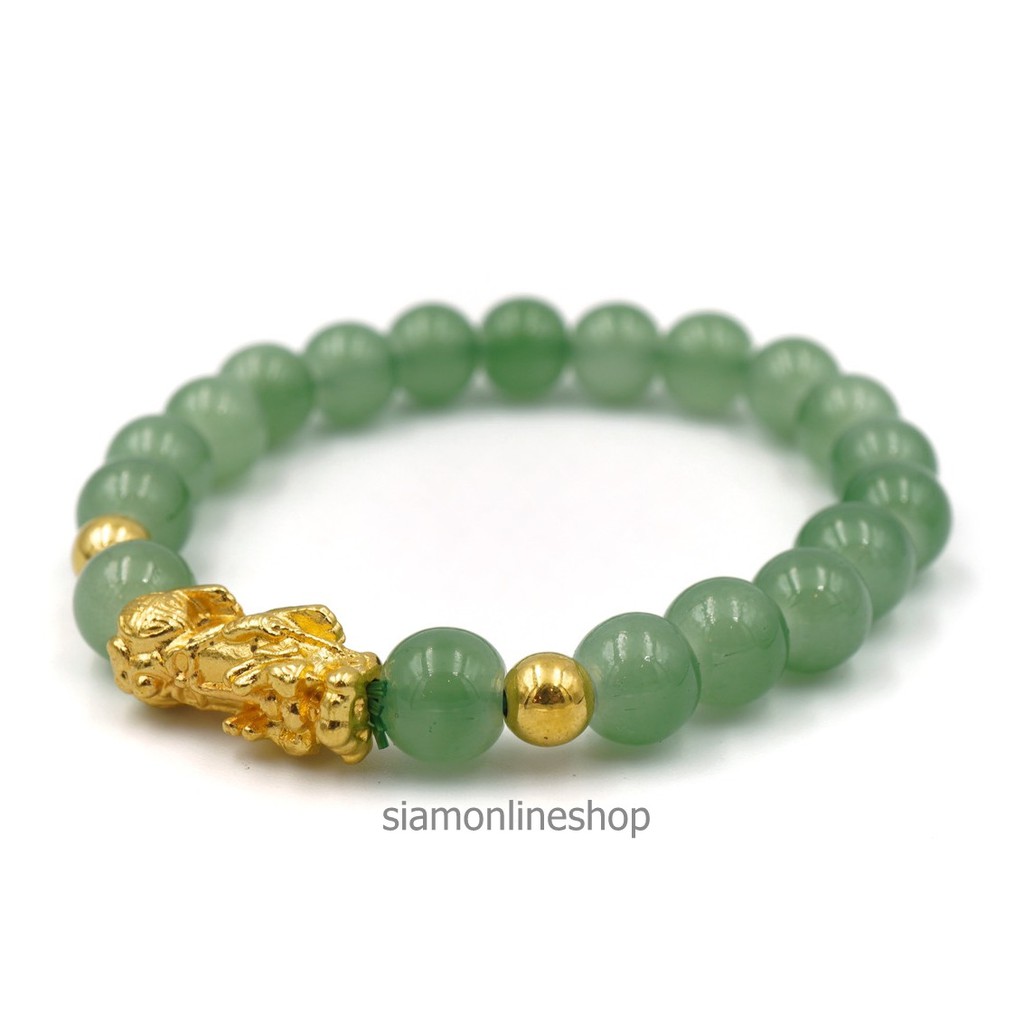 Pixiu ปี่เซียะเรียกทร้พย์ สีฟ้าเขียว ขนาด 7 มม. สร้อยข้อมือหินแท้ by siamonlineshop