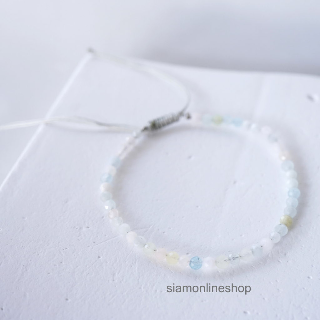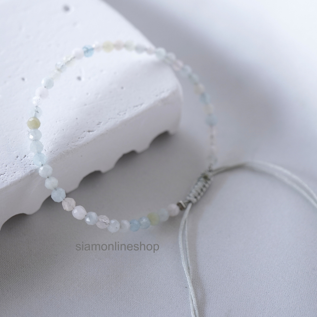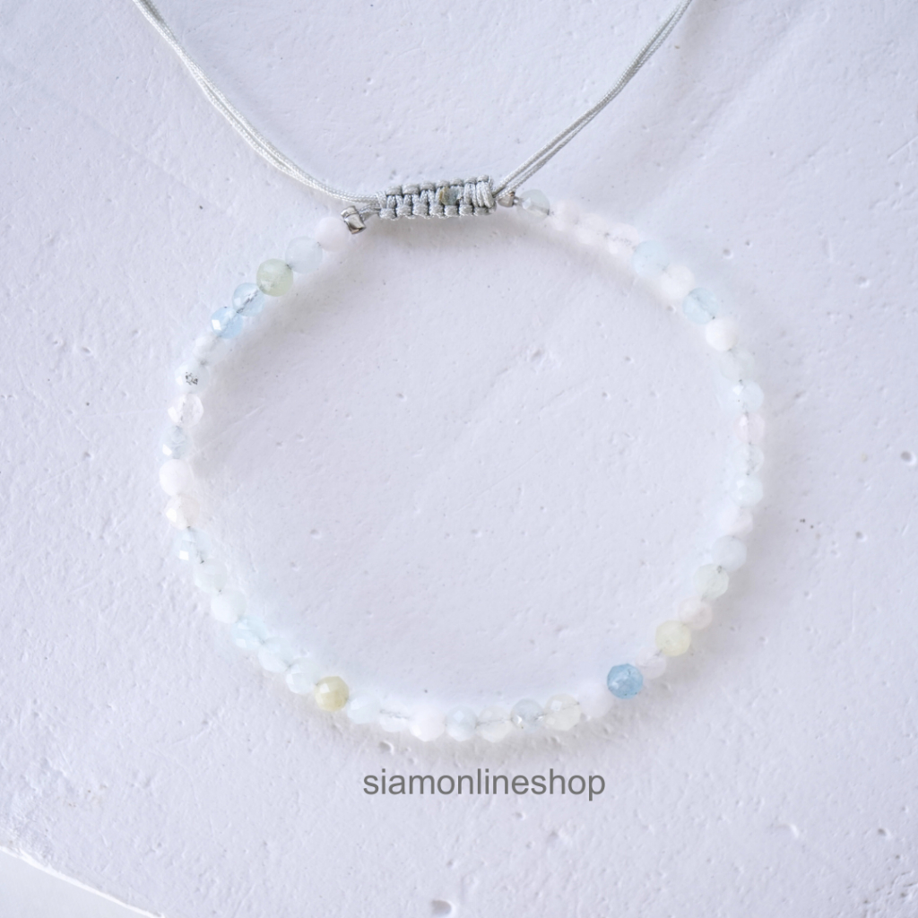 Minimalist bracelet - Beryl stone หินเบริล ขนาด 2, 3 มม. สร้อยข้อมือ เชือกถัก by siamonlineshop