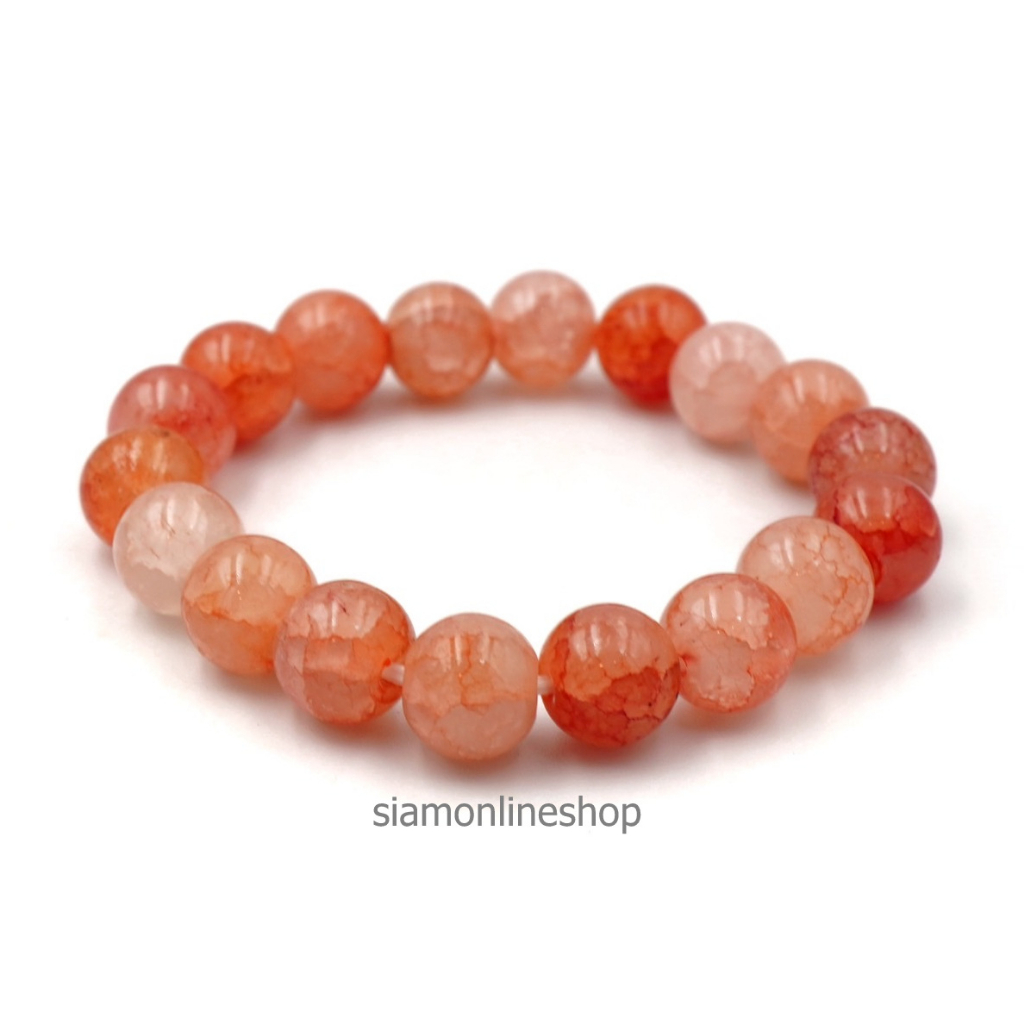 CRACKED AGATE หินเกล็ดมังกร หินสี โทนสีส้ม ขนาด 10 มม. สร้อยข้อมือหินนำโชค by siamonlineshop