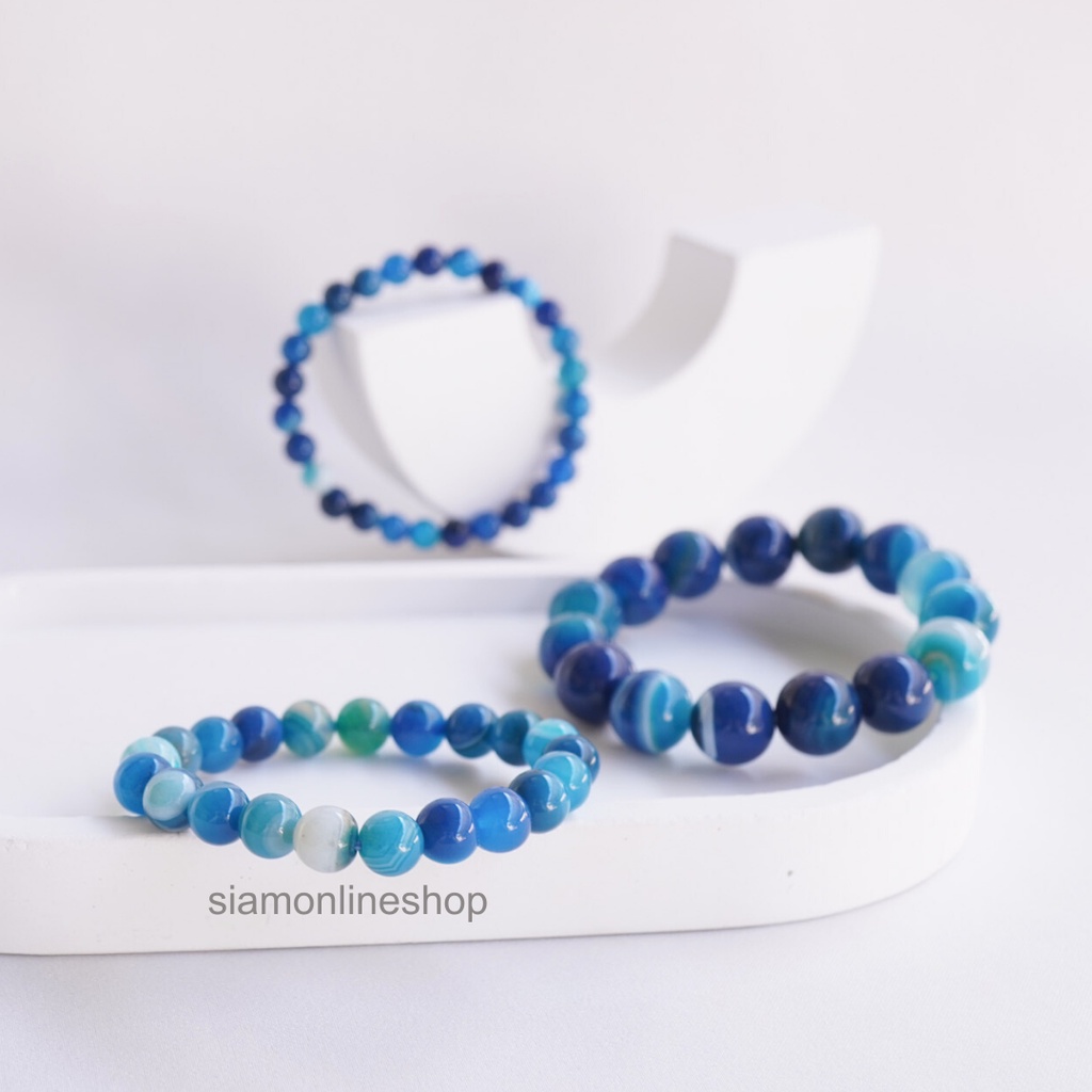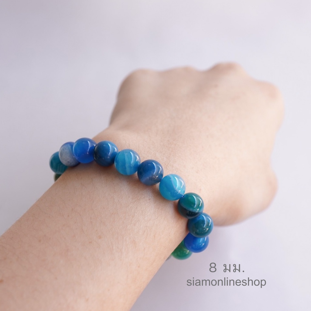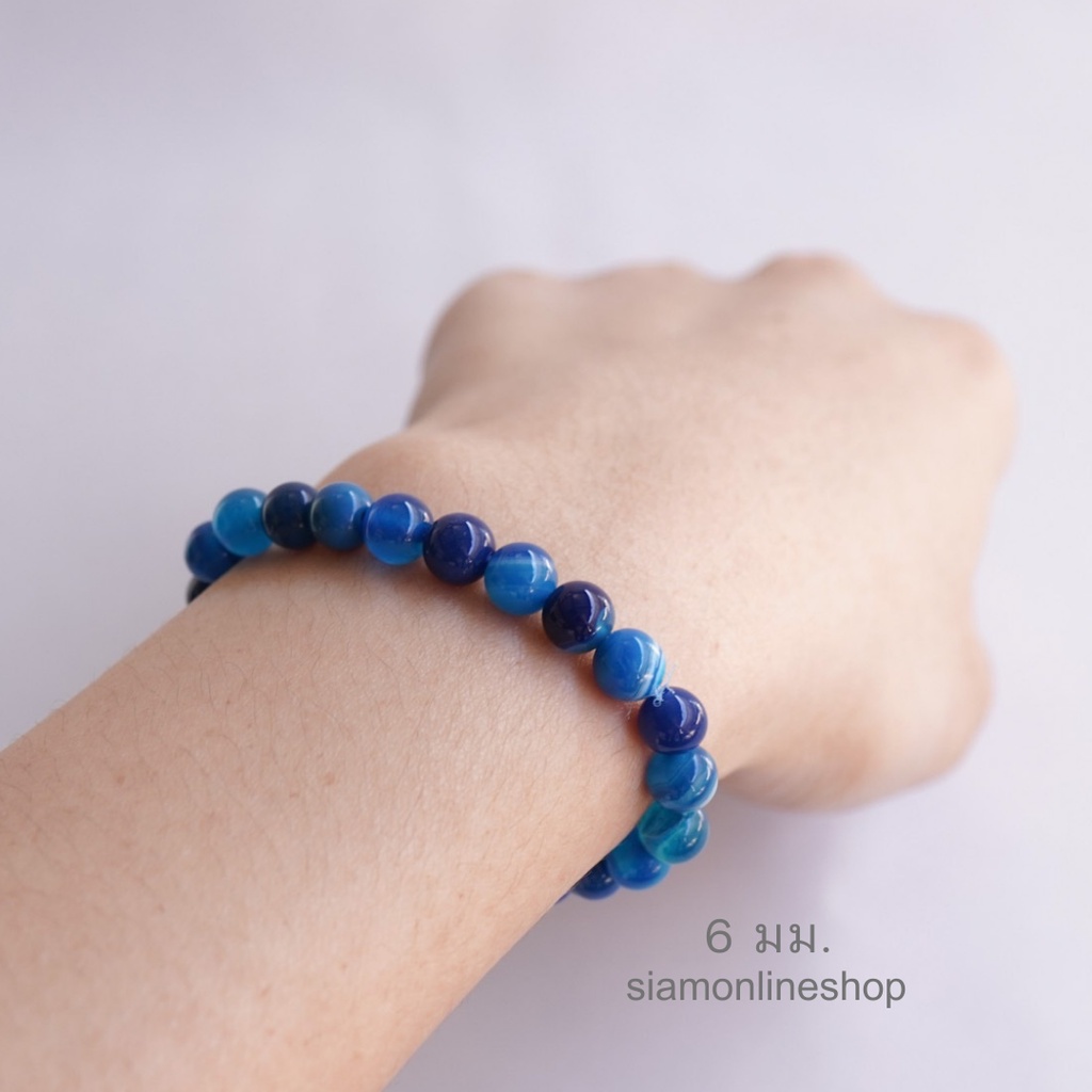ิBLUE AGATE หินอาเกต โมรา สีฟ้า เลือกขนาดเม็ดหินได้ 4-12 มม. สร้อยข้อมือหินแท้ by siamonlineshop