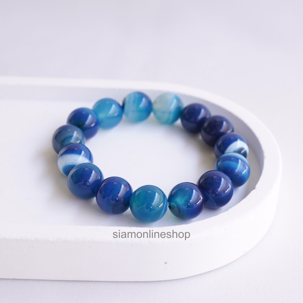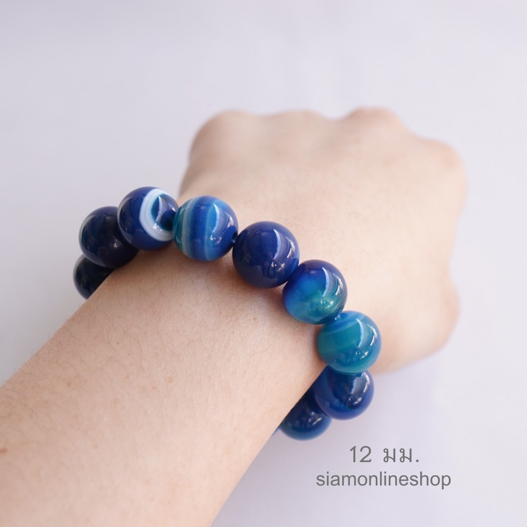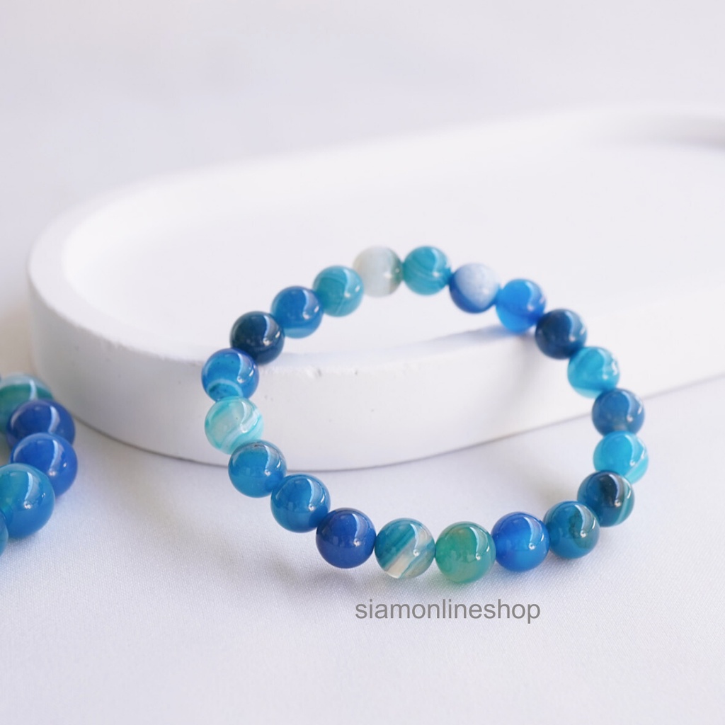 ิBLUE AGATE หินอาเกต โมรา สีฟ้า เลือกขนาดเม็ดหินได้ 4-12 มม. สร้อยข้อมือหินแท้ by siamonlineshop
