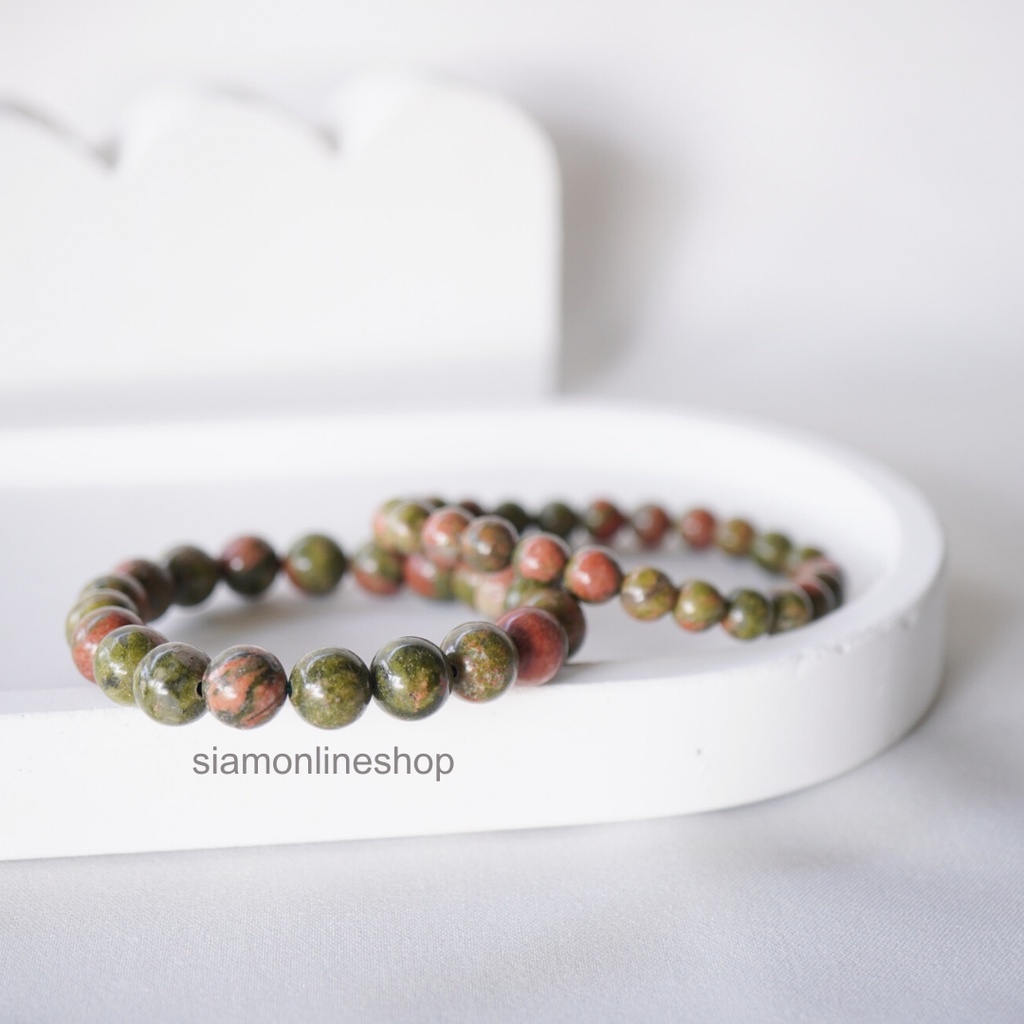 UNAKITE หินยูนาไคต์ เลือกขนาดเม็ดหินได้ (4-18 มม.) หินถูกหวย สร้อยข้อมือหินแท้ by siamonlineshop