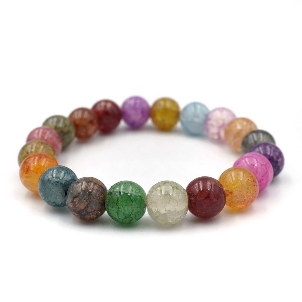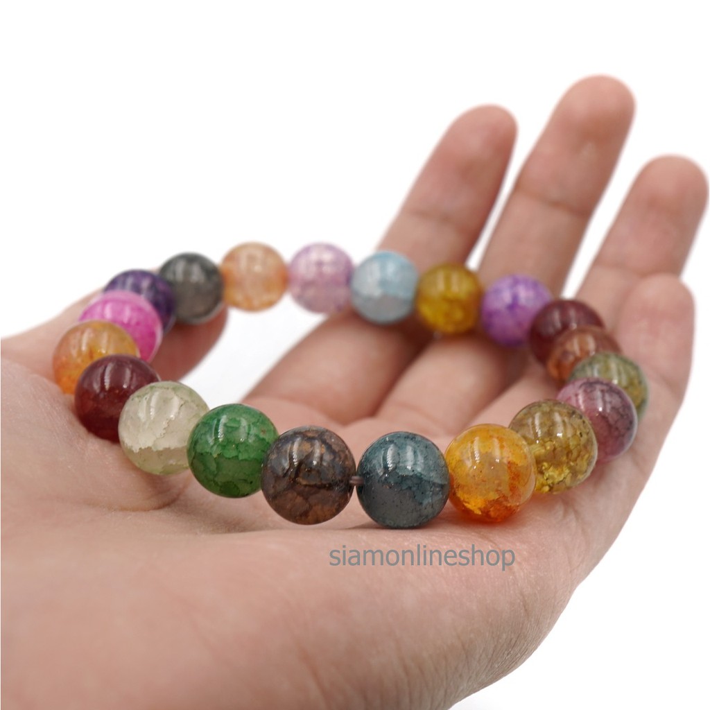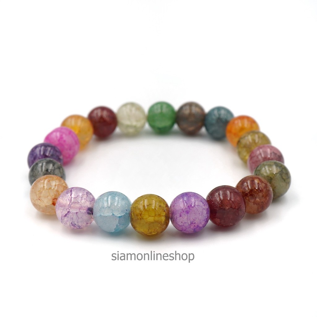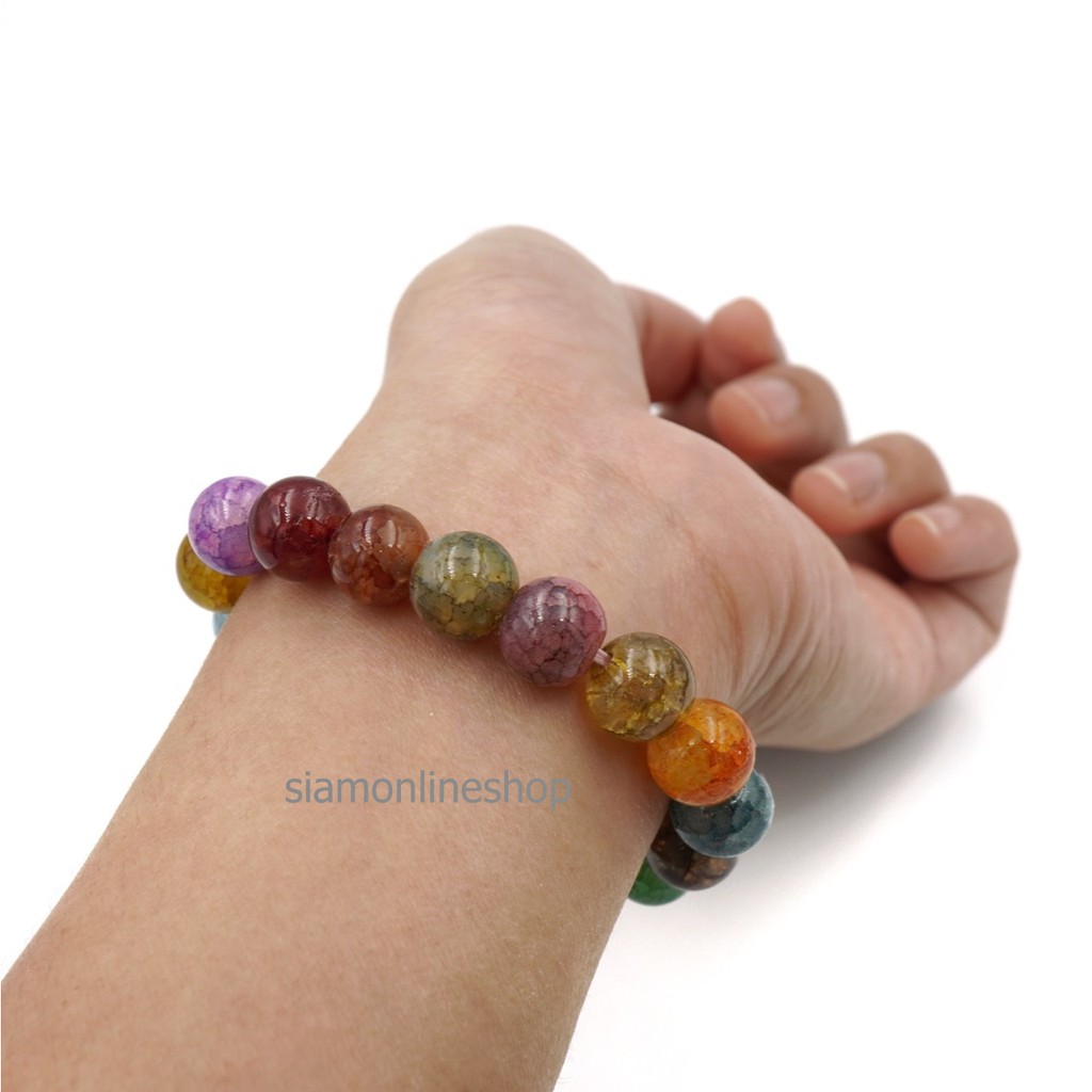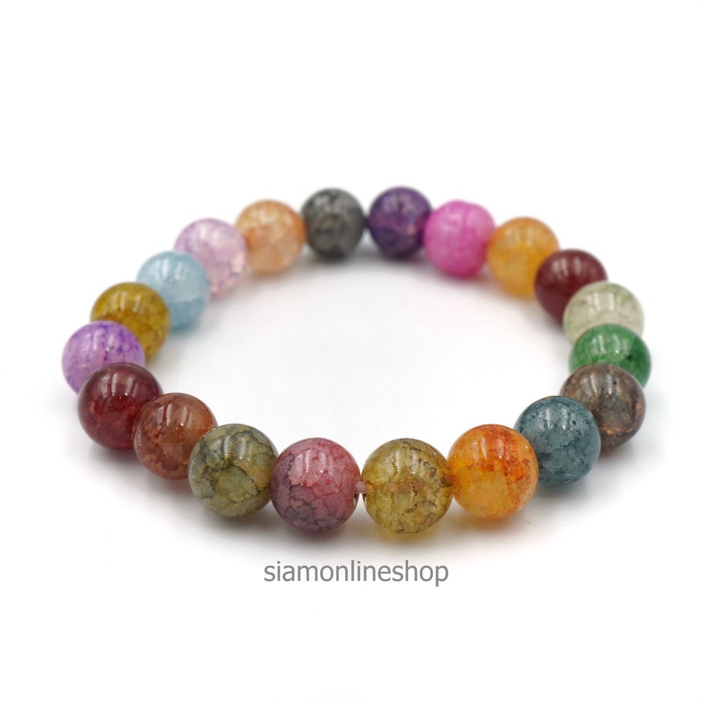 CRACKED AGATE หินเกล็ดมังกร หินสี โทนหลากสี ขนาด 10 มม. สร้อยข้อมือหินนำโชค by siamonlineshop