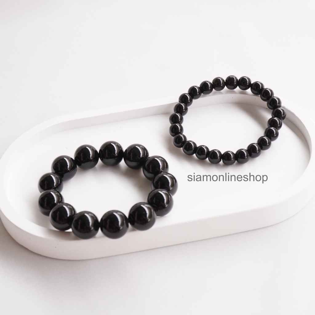BLACK OPAL หินแบล็คโอปอล เลือกขนาดเม็ดหินได้ ( 4-14 มม.) สร้อยข้อมือหินนำโชค by siamonlineshop