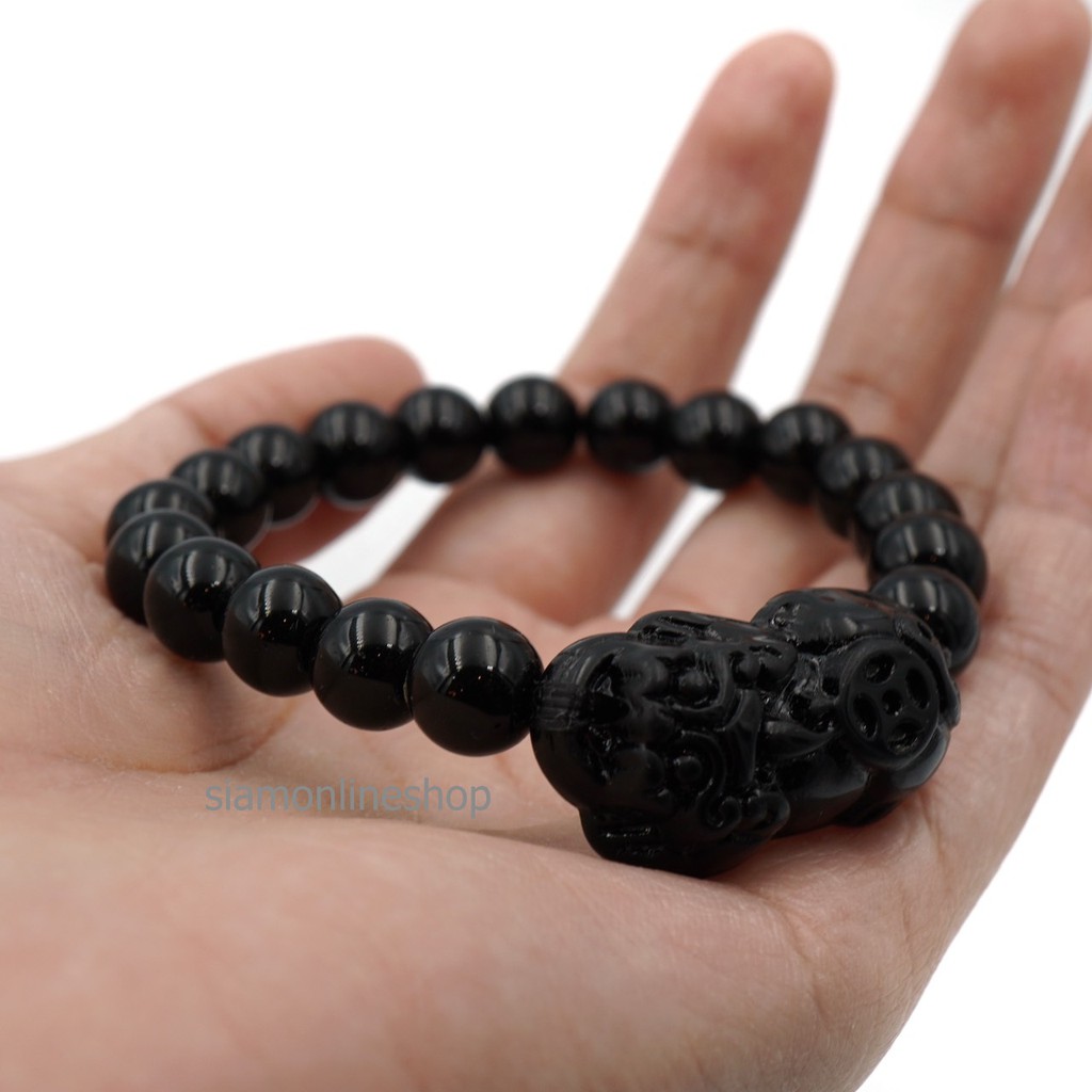 Pixiu Pi Yao กำไลหินสะเก็ดดาว อุลกมณี ประดับปี่เซียะเรียกทรัพย์ ขนาด 8 มม. by siamonlineshop