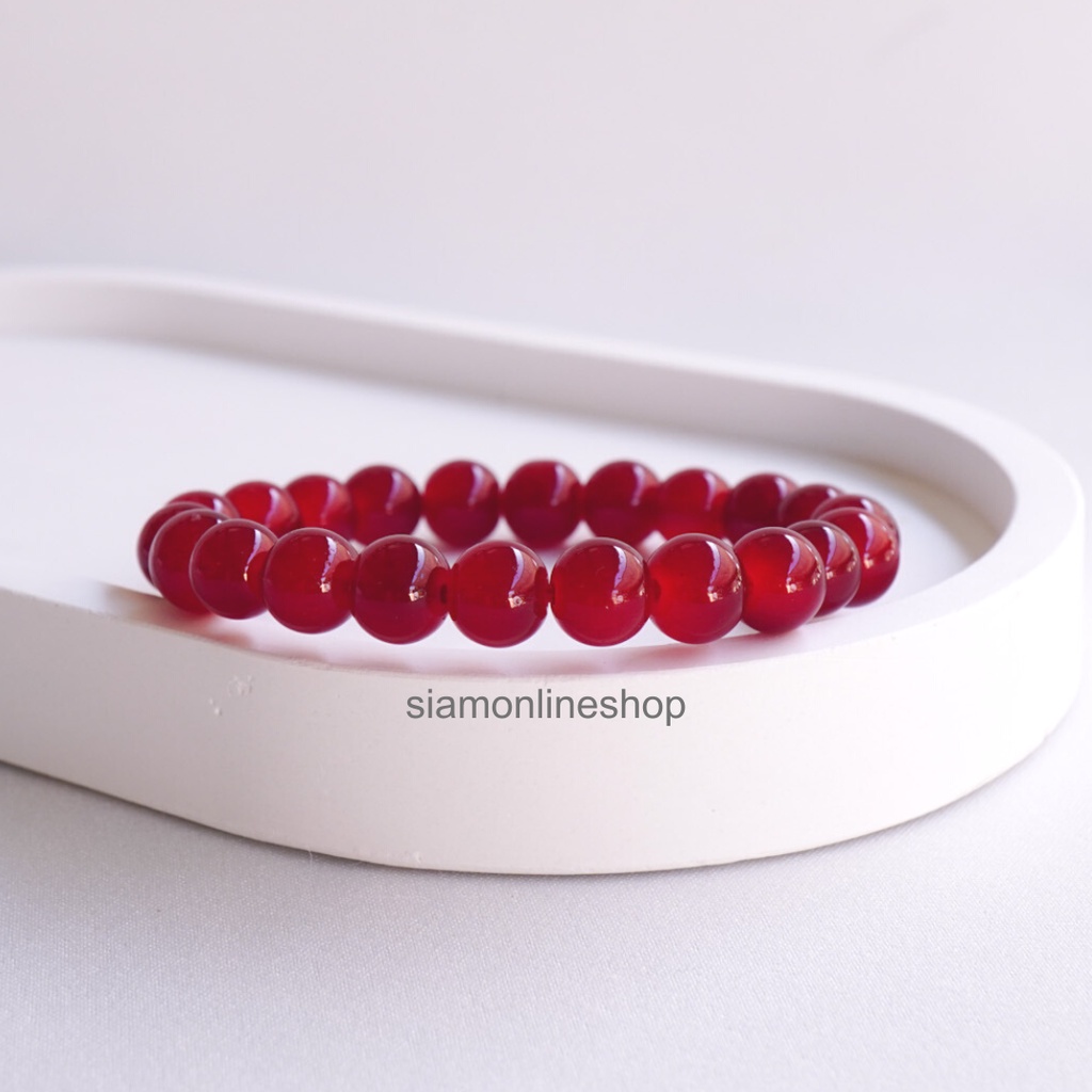 LUCKYSTONE หินสีนำโชค โทนสีแดงโกเมน ขนาด 8 มม. สร้อยข้อมือหินแท้ by siamonlineshop