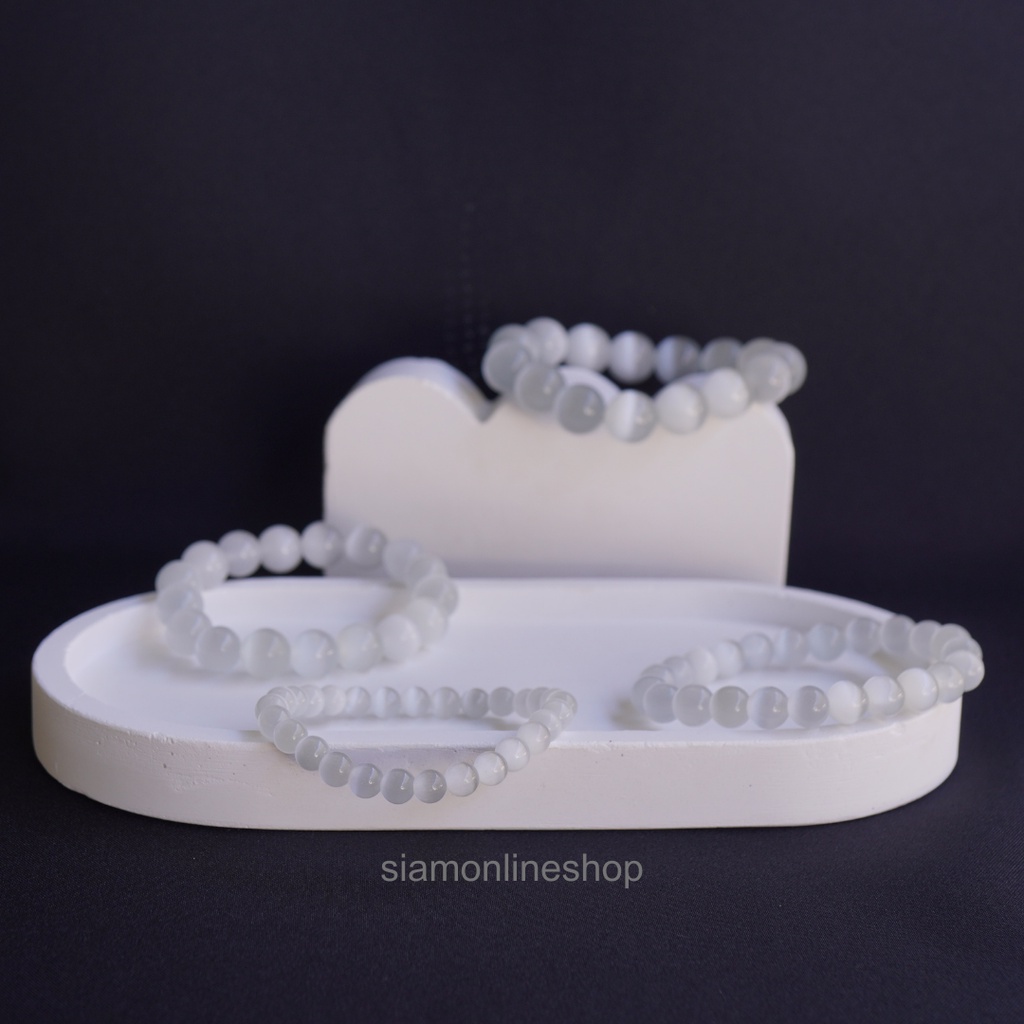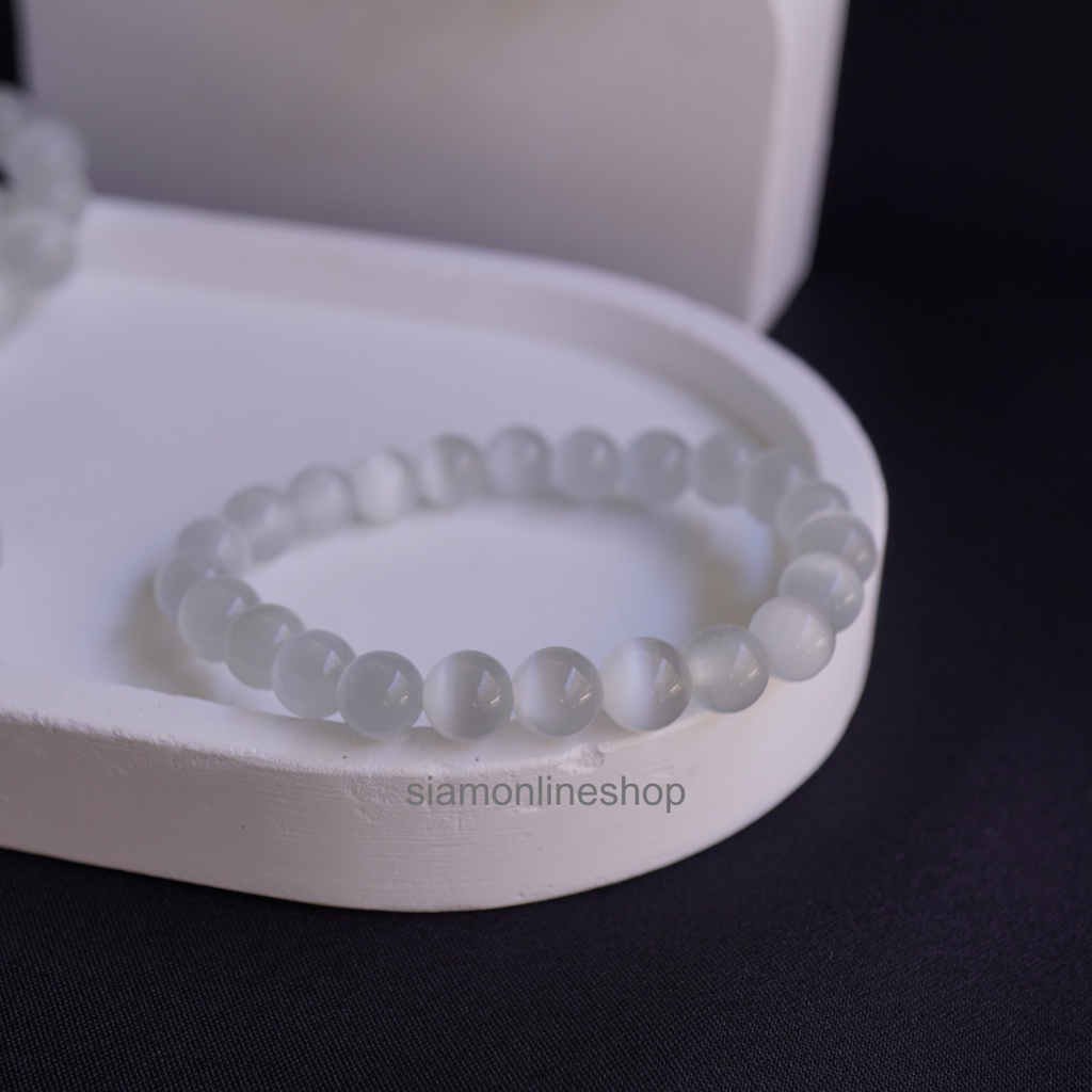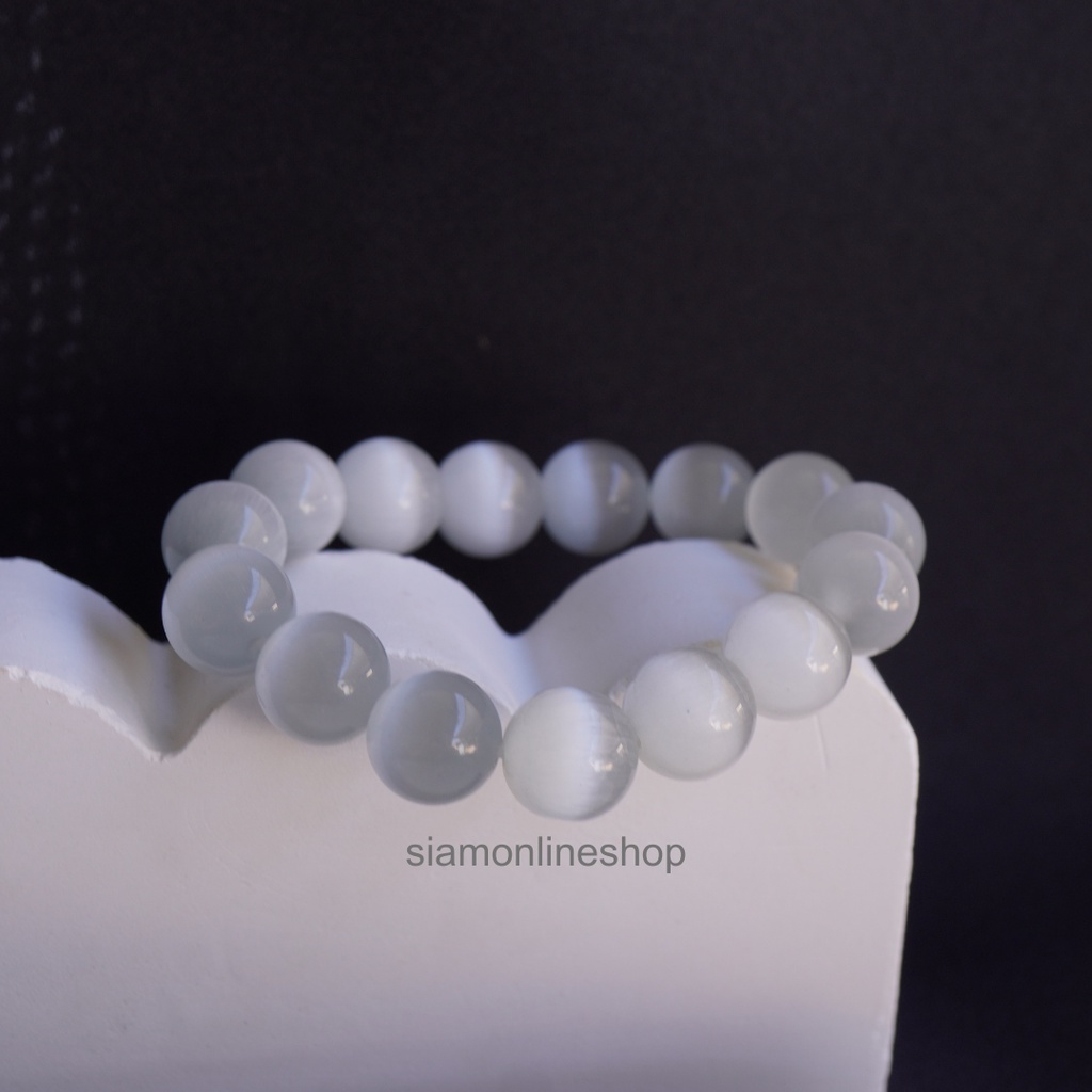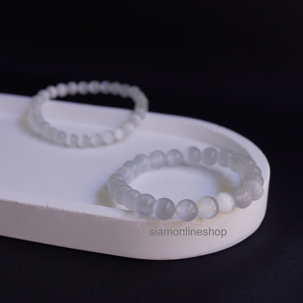CATEYE หินตาแมว สีขาว เลือกขนาดเม็ดหินได้ สร้อยข้อมือหินแท้ by siamonlineshop