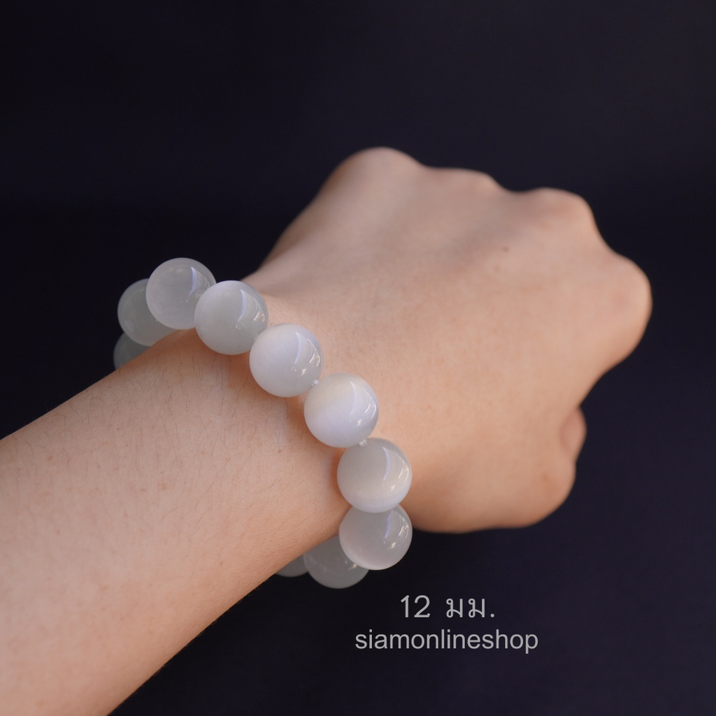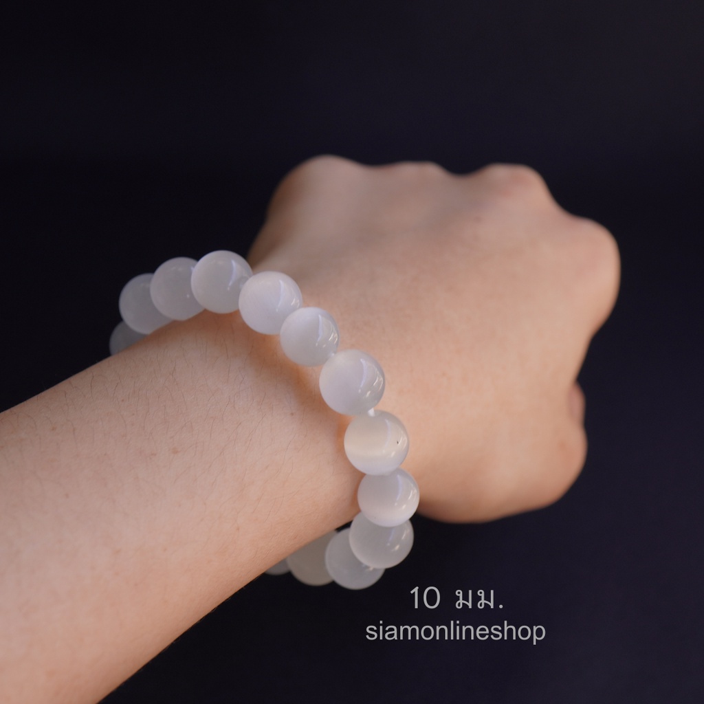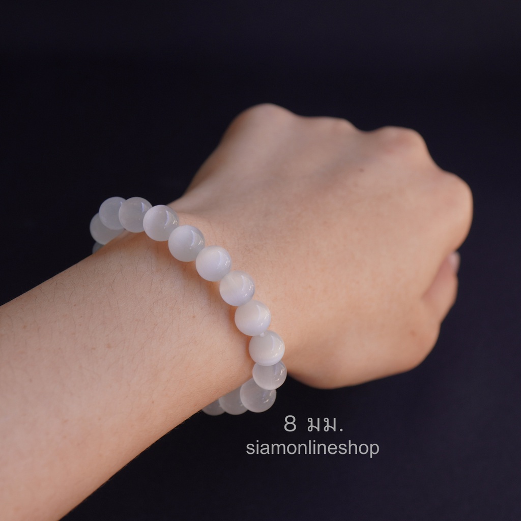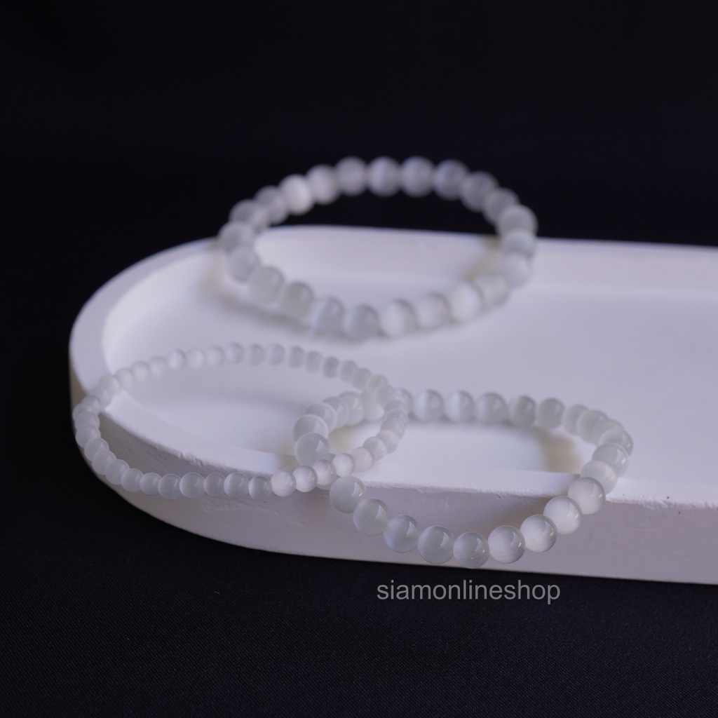 CATEYE หินตาแมว สีขาว เลือกขนาดเม็ดหินได้ สร้อยข้อมือหินแท้ by siamonlineshop
