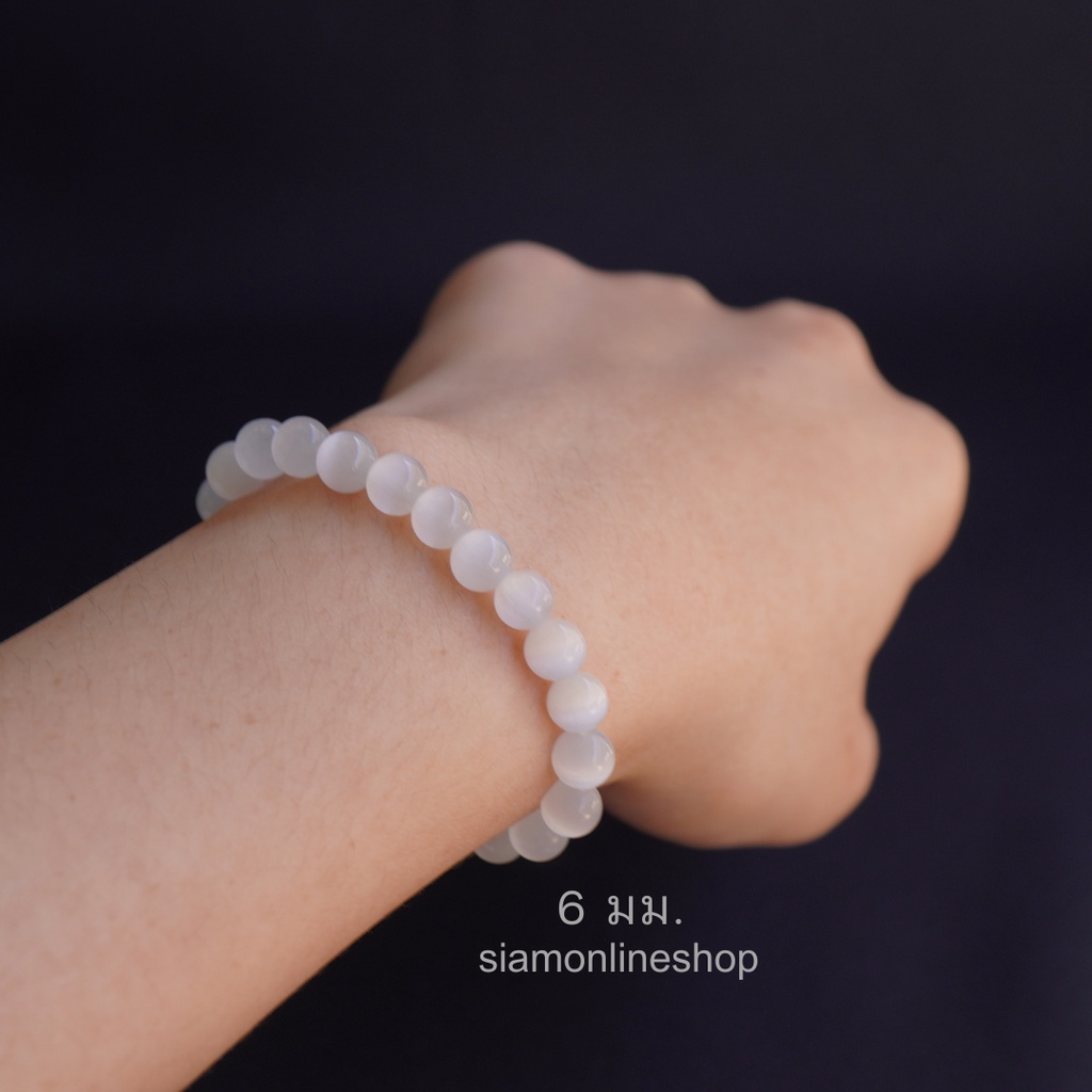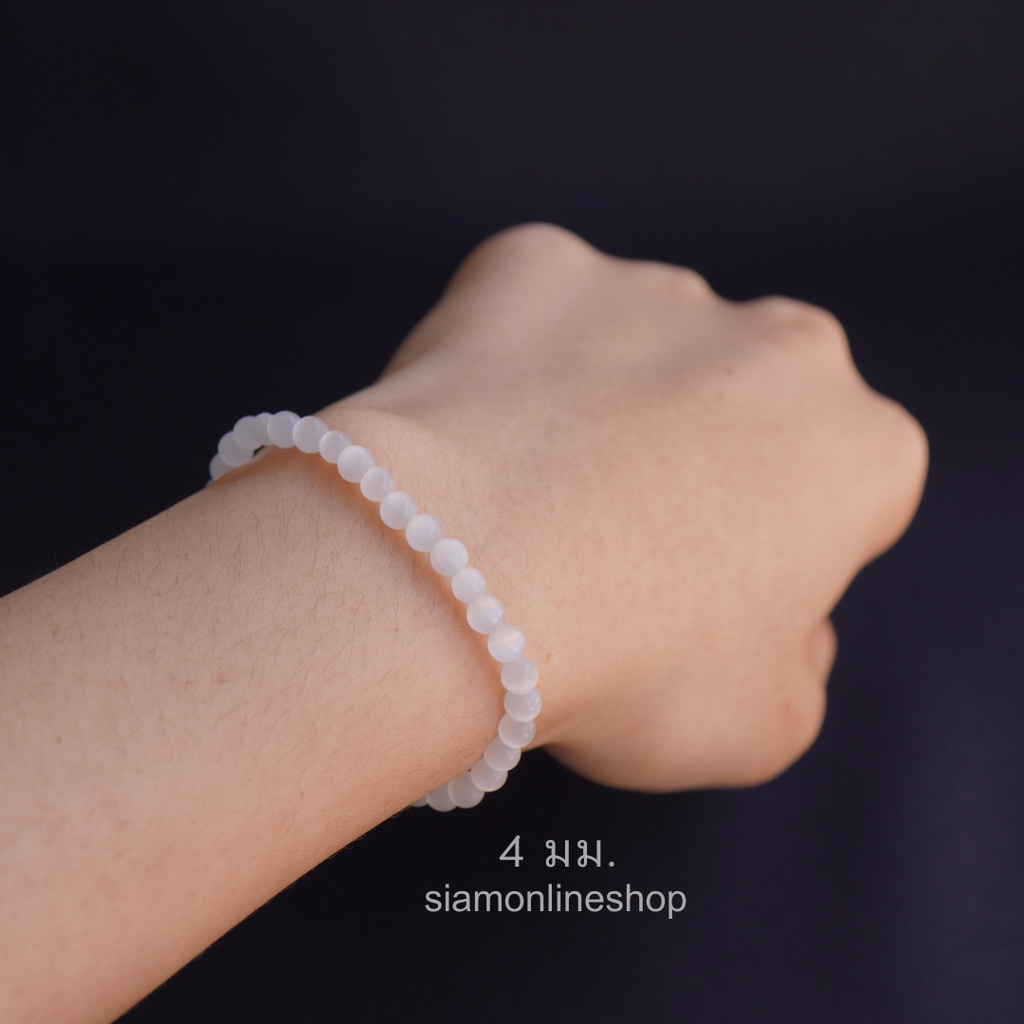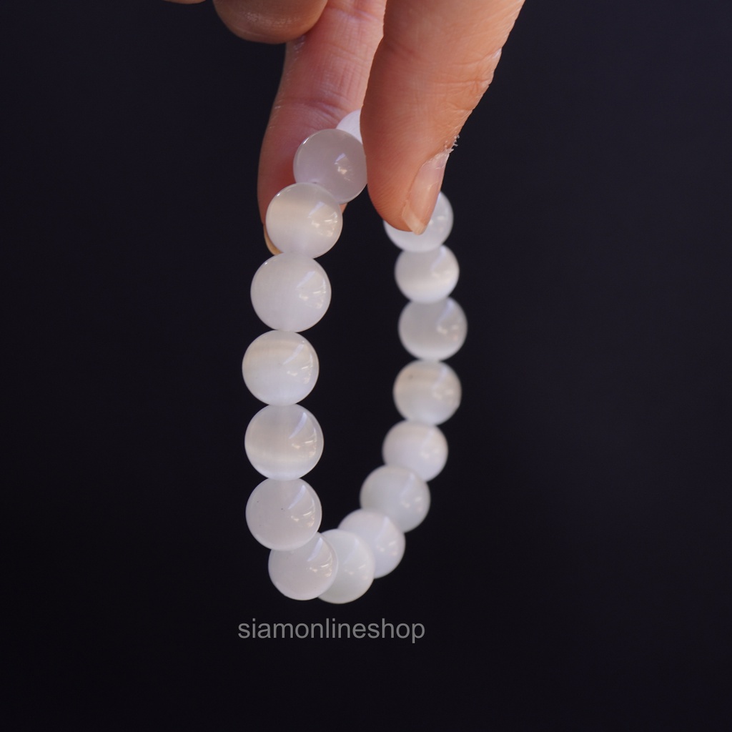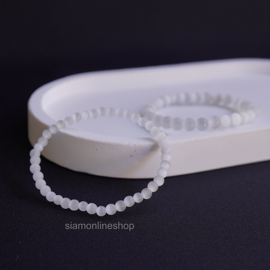 CATEYE หินตาแมว สีขาว เลือกขนาดเม็ดหินได้ สร้อยข้อมือหินแท้ by siamonlineshop