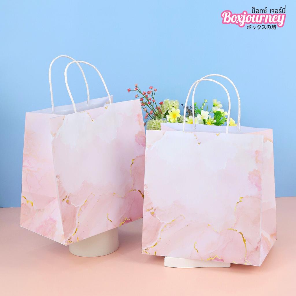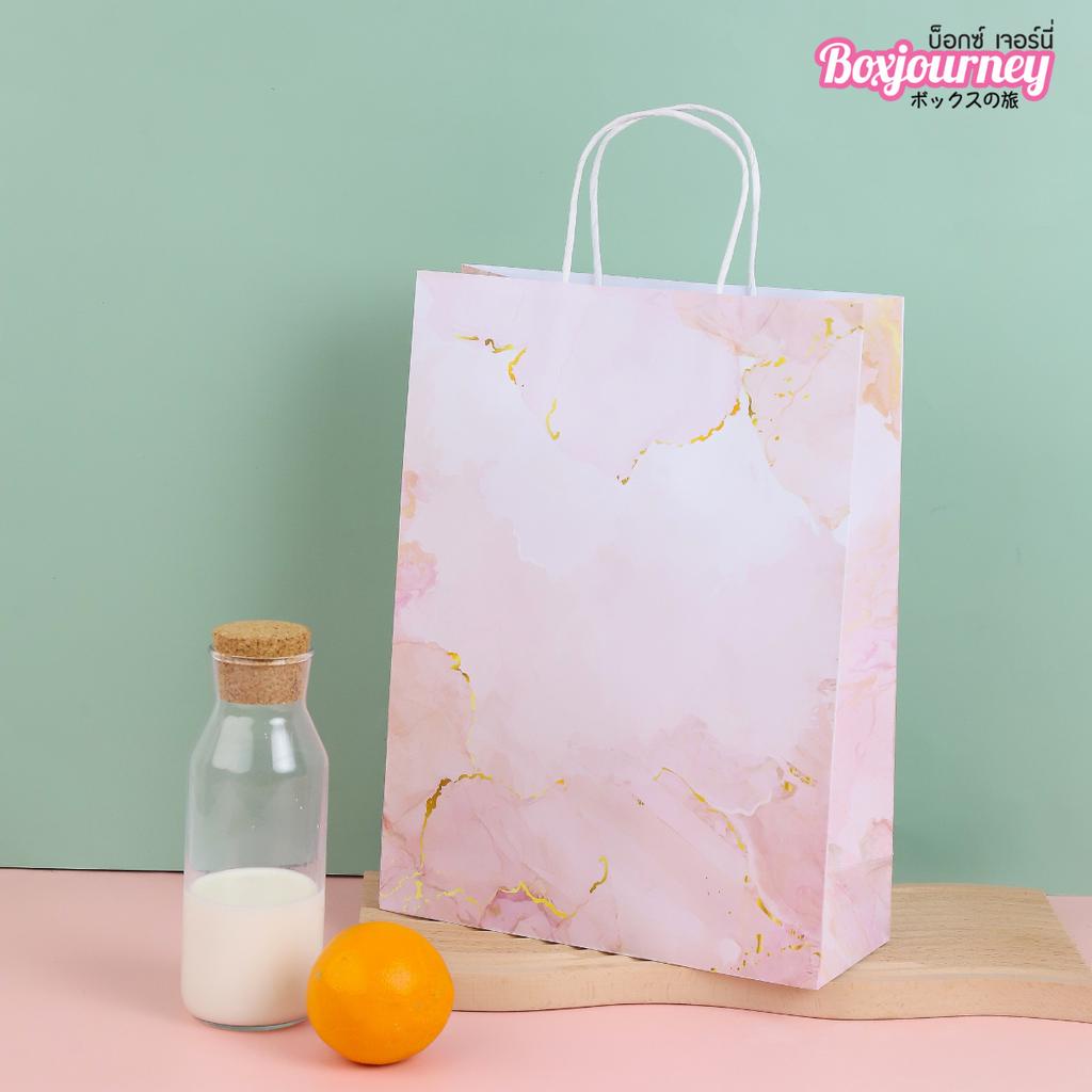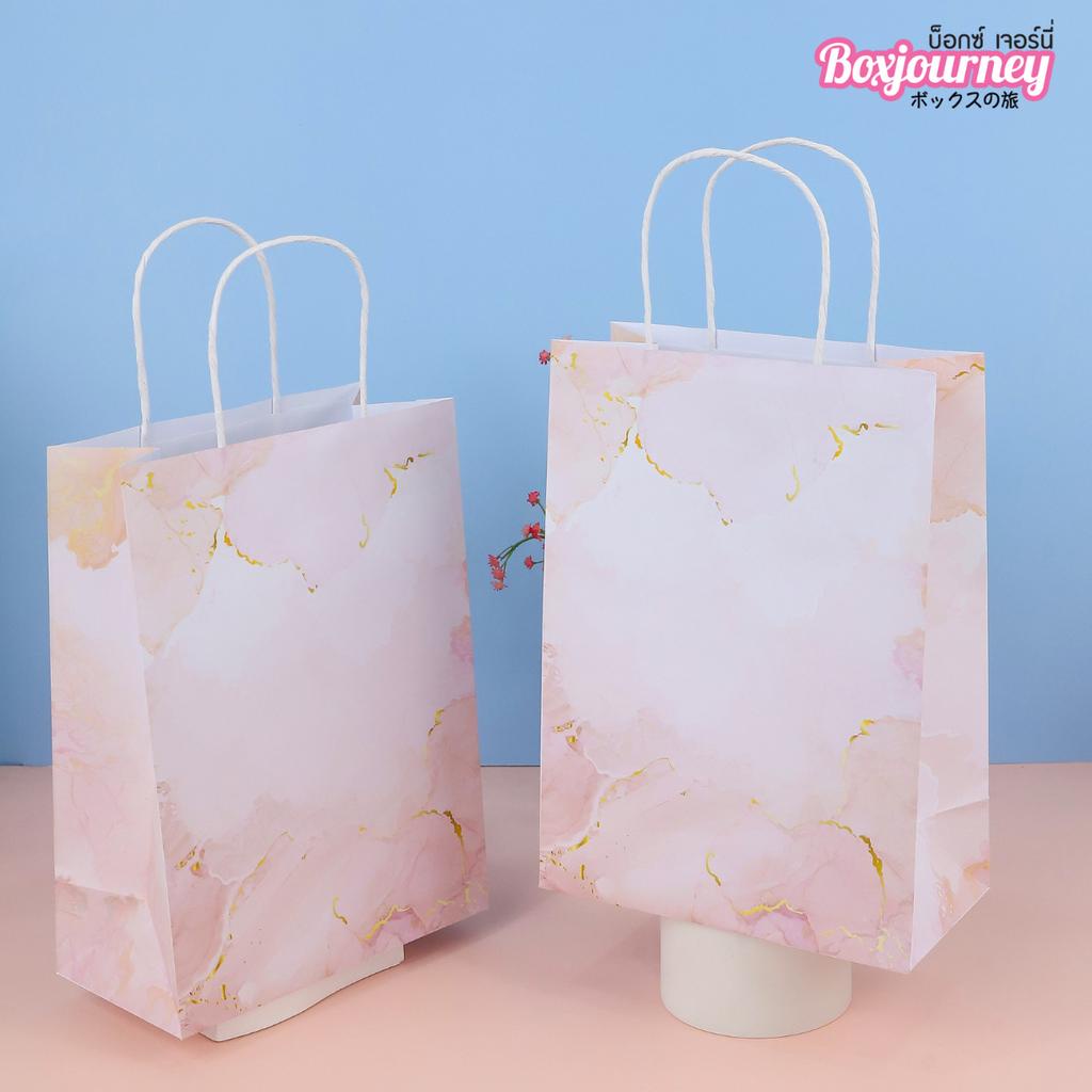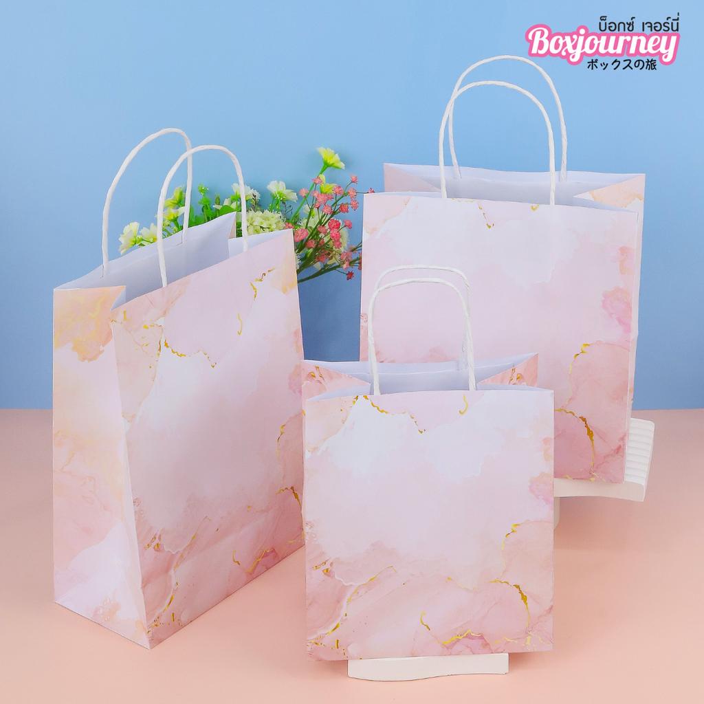 Boxjourney ถุงกระดาษมีหูหิ้ว พิมพ์ลายพิงค์มาเบิ้ล มี 5 ขนาด (25 ชิ้น/แพ็ค)