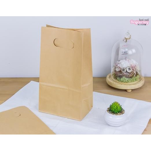 Boxjourney ถุงกระดาษน้ำตาล แบบหูเจาะ(บาง) 14.6x9xสูง27cm. (50 ใบ/แพค)