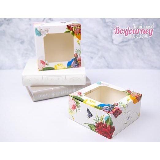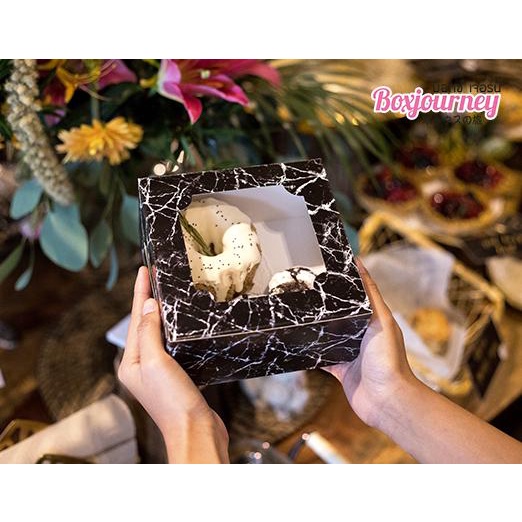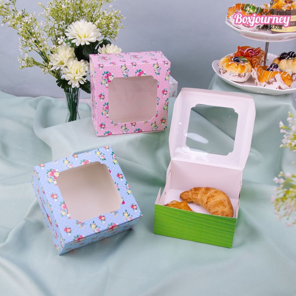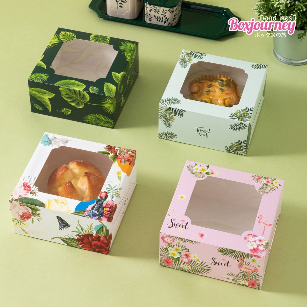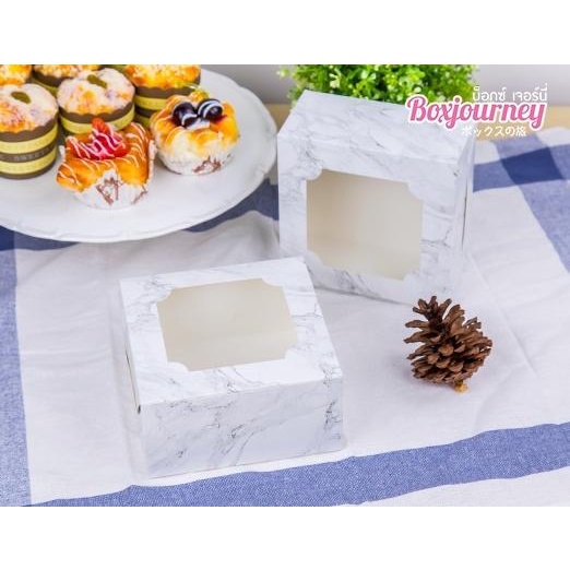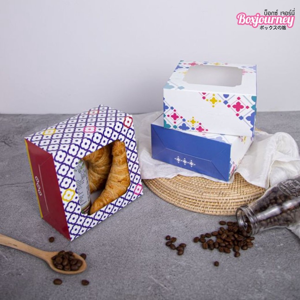 Boxjourney กล่องสแน็ค (กล่องเค้กครึ่งปอนด์) สีขาว/คราฟท์/พิมพ์ลาย (20 ใบ/แพ็ค) จัดเบรค กล่องใส่ขนม