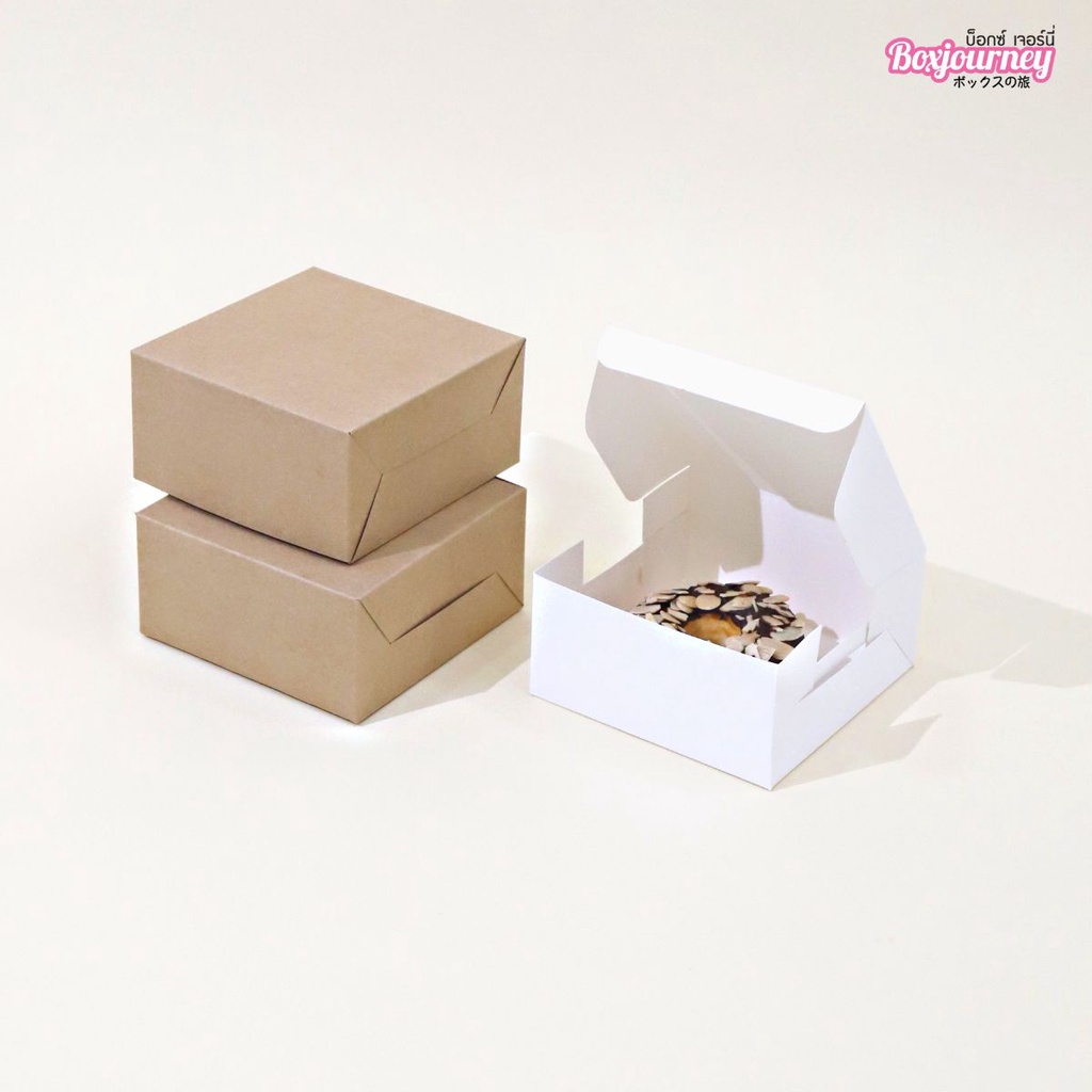 Boxjourney กล่องสแน็ค/จัดเบรค ไม่มีหน้าต่าง 12.7x12.7x6.5 ซม. (20 ใบ/แพค) กล่องใส่ขนม กล่องจัดเบรค