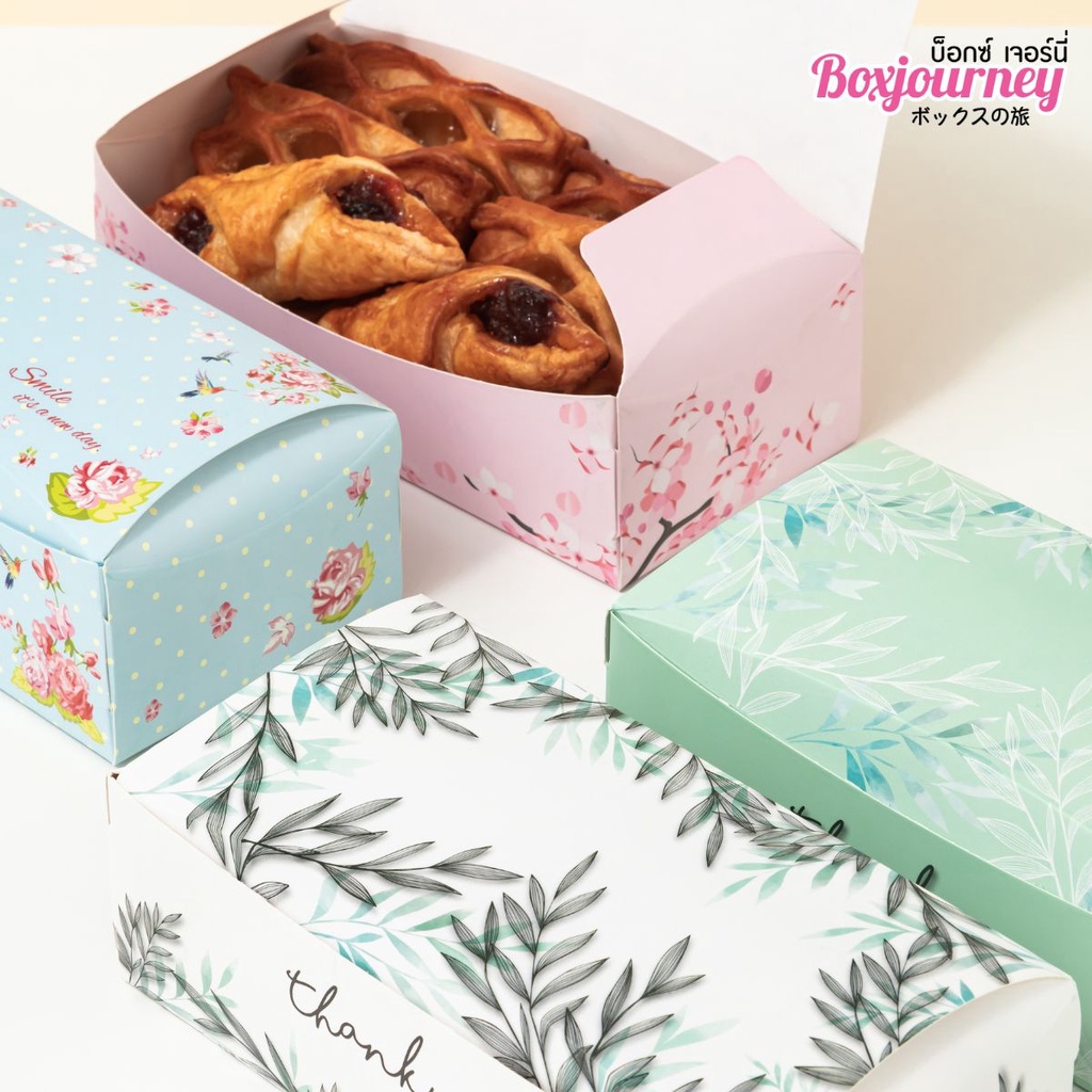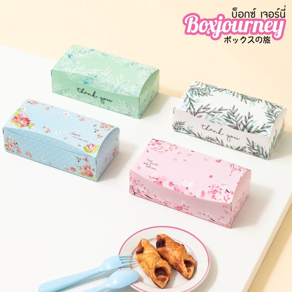 Boxjourney กล่องพายสับปะรด มี 4 ลาย ขนาด 9x18.5x5.5 ซม. (20 ใบ/แพค)