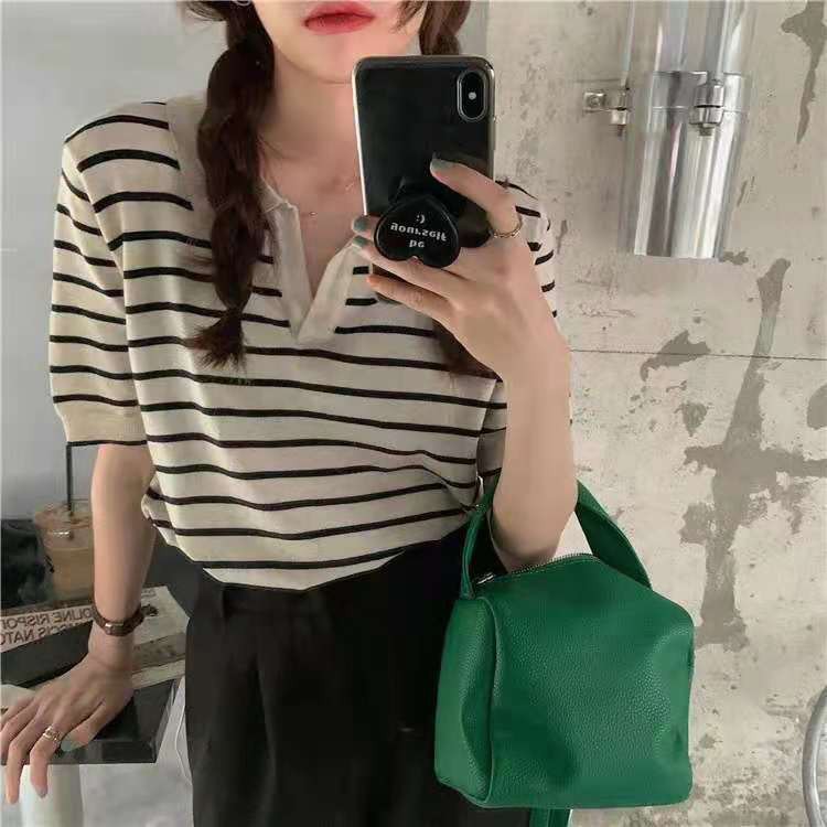 ✨MKL✨ เสื้อคอปก ลายคาด สไตล์เกาหลี A121