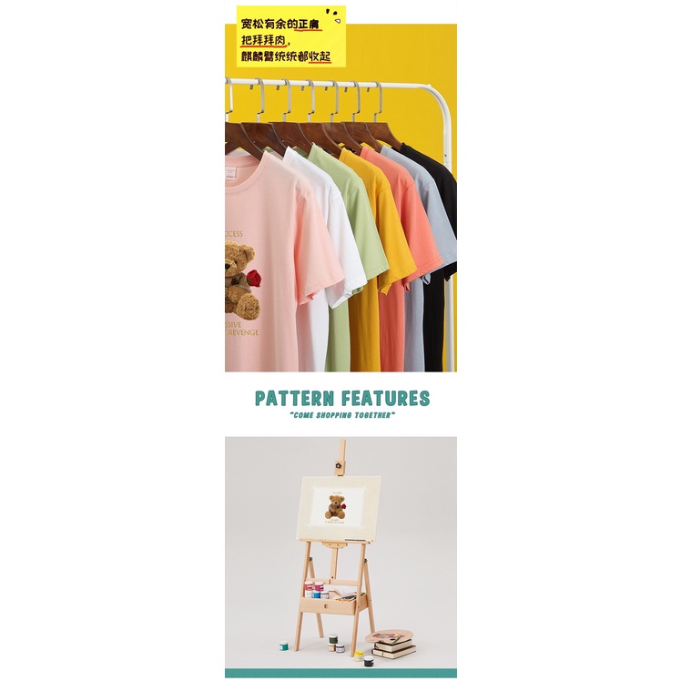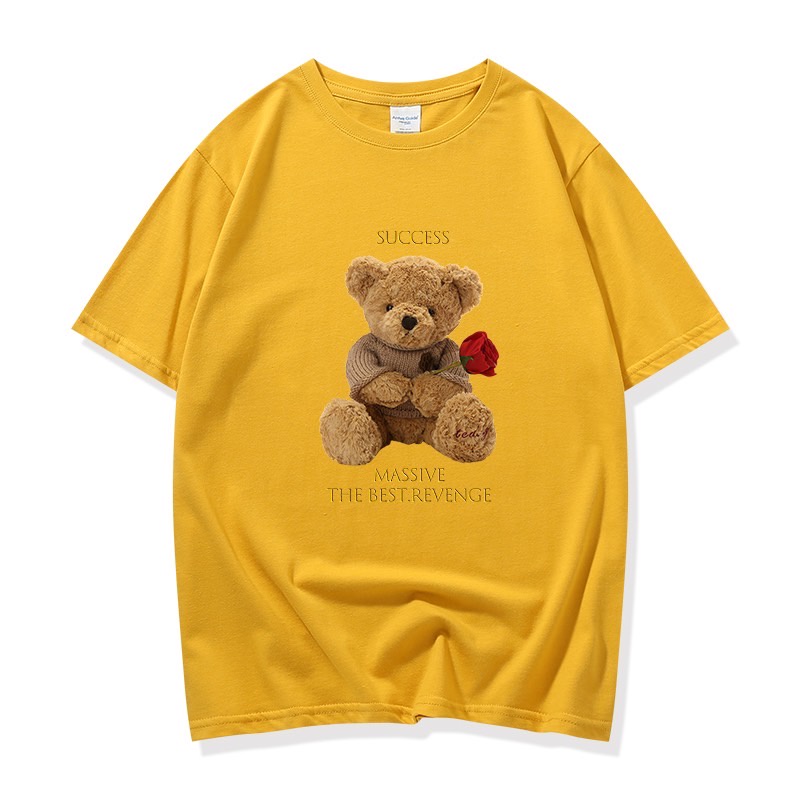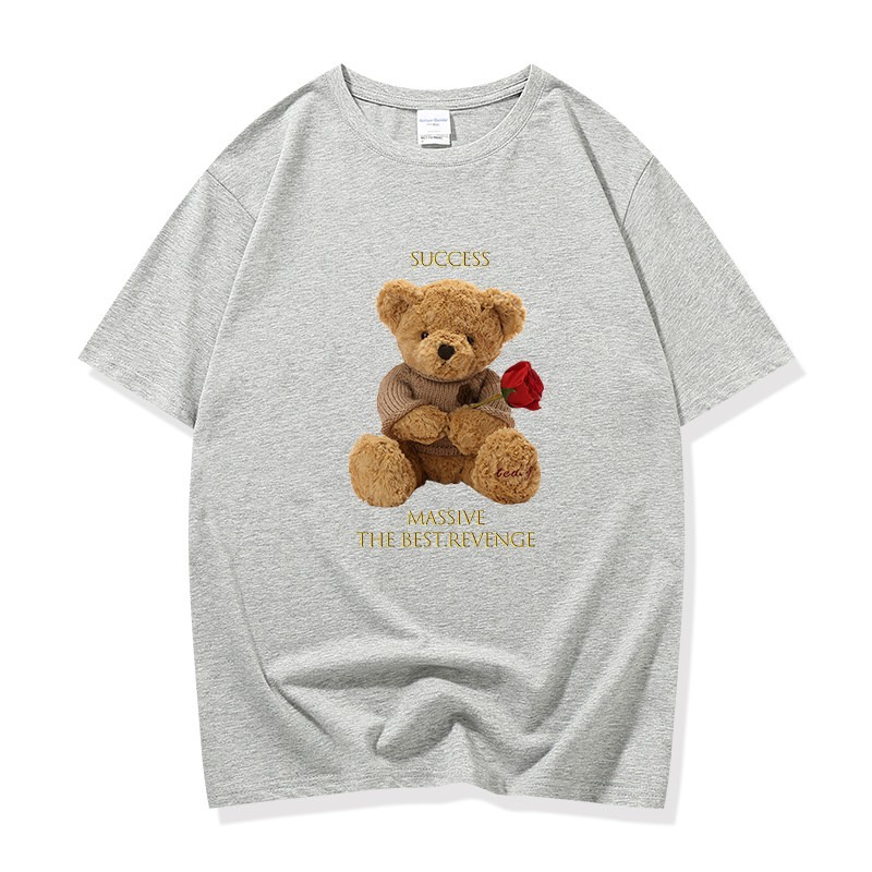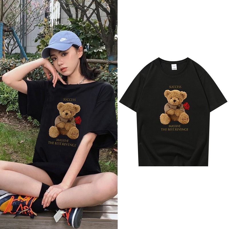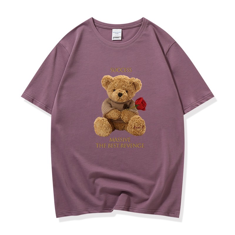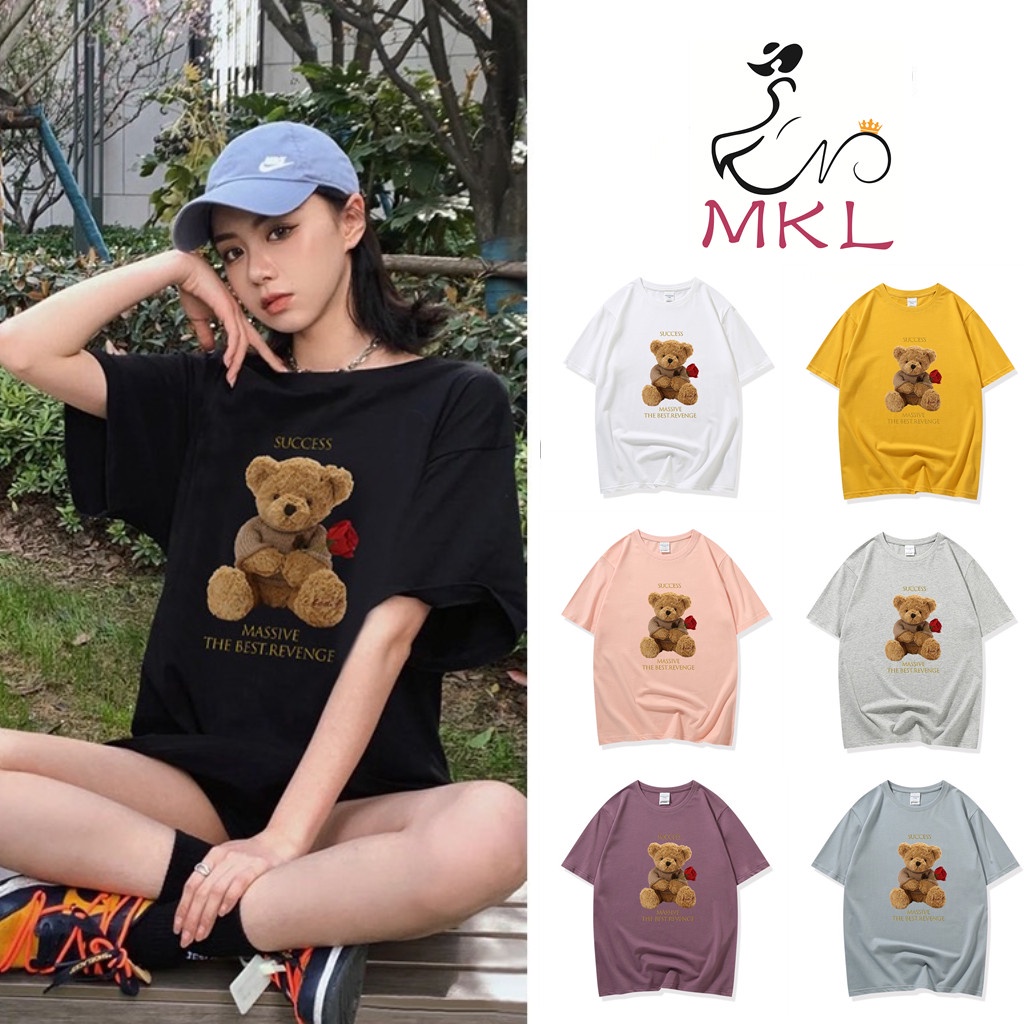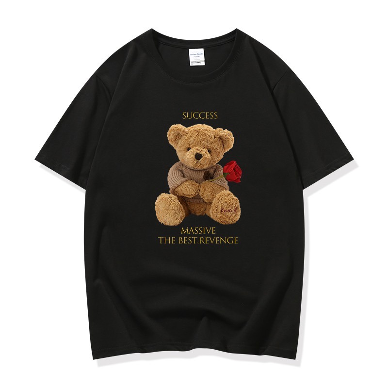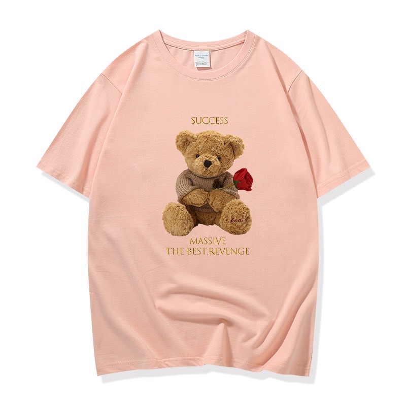 👚MKL 👚เสื้อยืด คอกลม แขนสั้น ผ้านิ่ม ลายตุ๊กตาหมีถือดอกกุหลาบ เสื้อยืดแฟชั่น สไตล์เกาหลี 👚 #9608