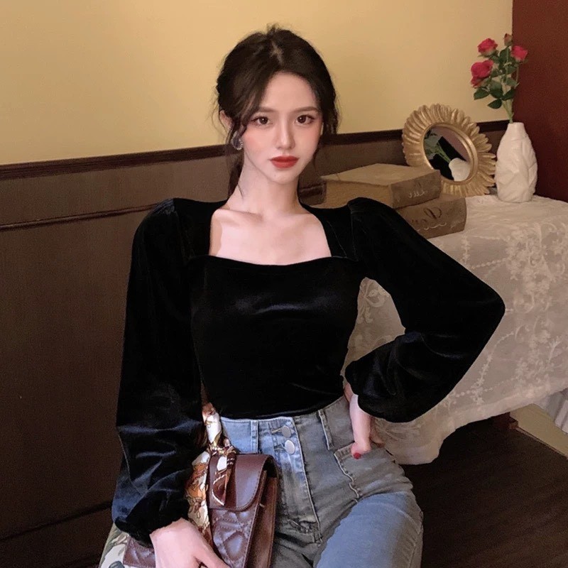 🌟 MKL ✨ เสื้อกำมะหยี่แนวย้อนยุคฝรั่งเศส เวอร์ชั่นสไตล์เกาหลี วังแขนโคมไฟ ทรงสลิมปกเหลี่ยม 🦋 #DS333