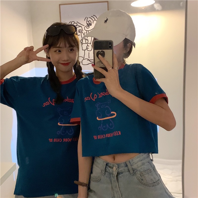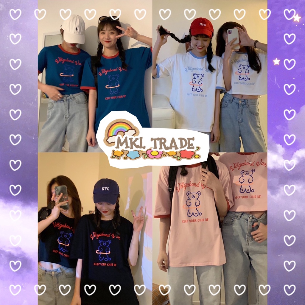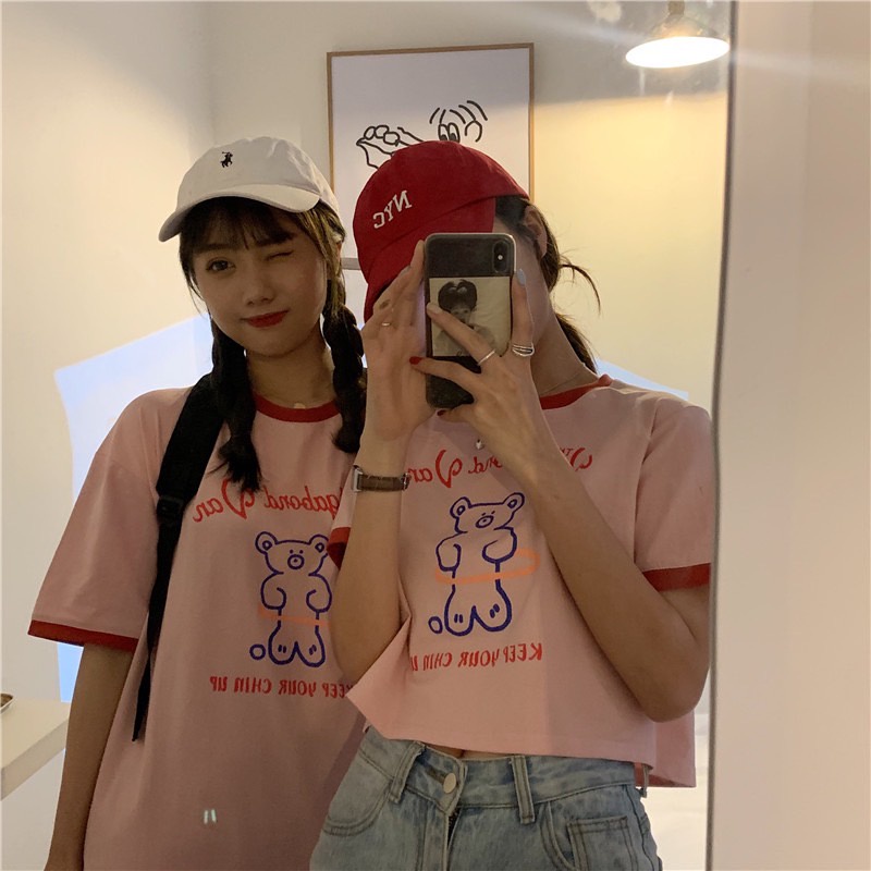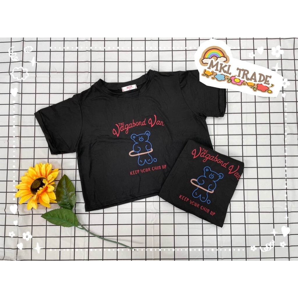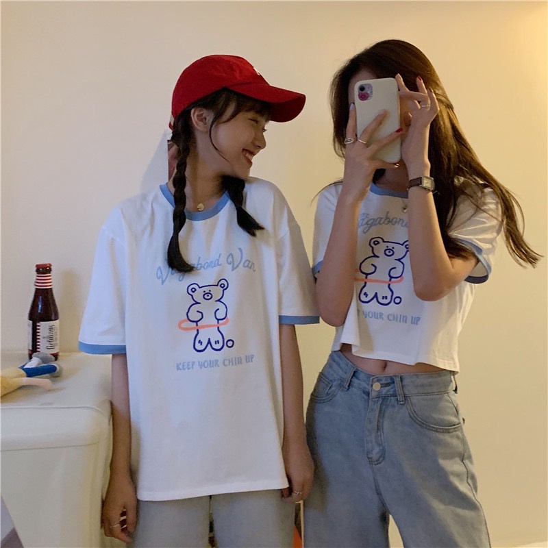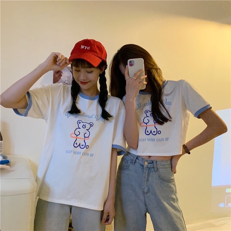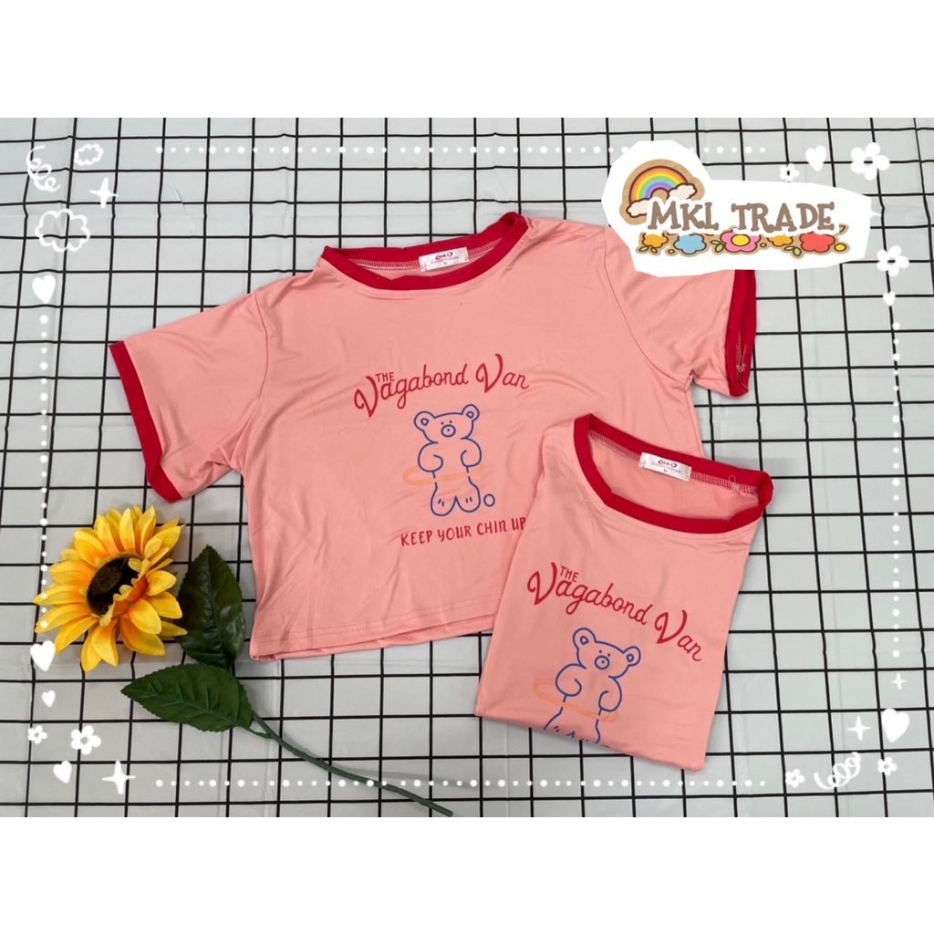 💥MKL💥 เสื้อยืด พิมพ์ลายน้องหมี ครอปเอวลอย สไตล์เกาหลี มีให้เลือก2แบบ 🐻 #9350-51