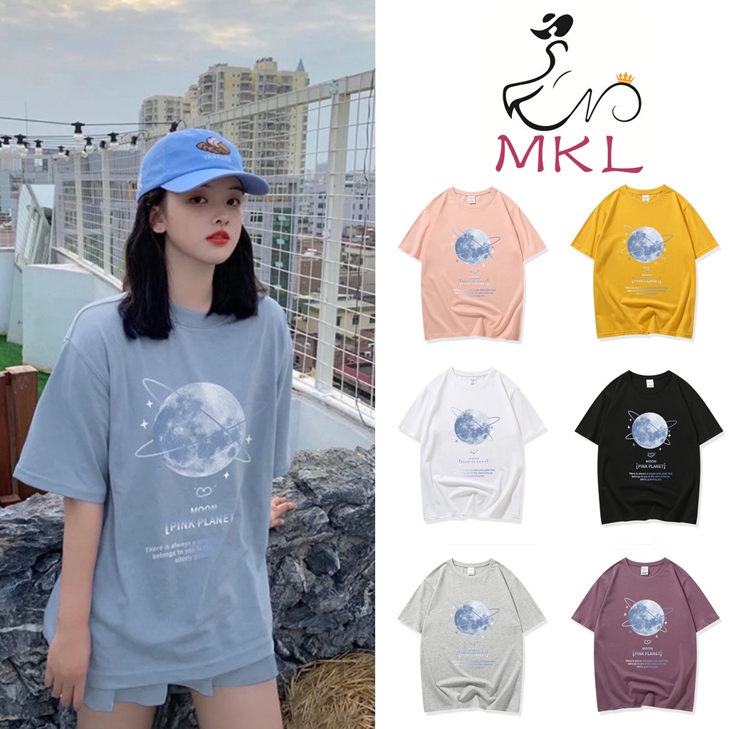 🌎MKL🌎เสื้อยืด คอกลมแขนสั้น ลายรูปโลกสีฟ้า สไตล์เกาหลี🌎#9603-1