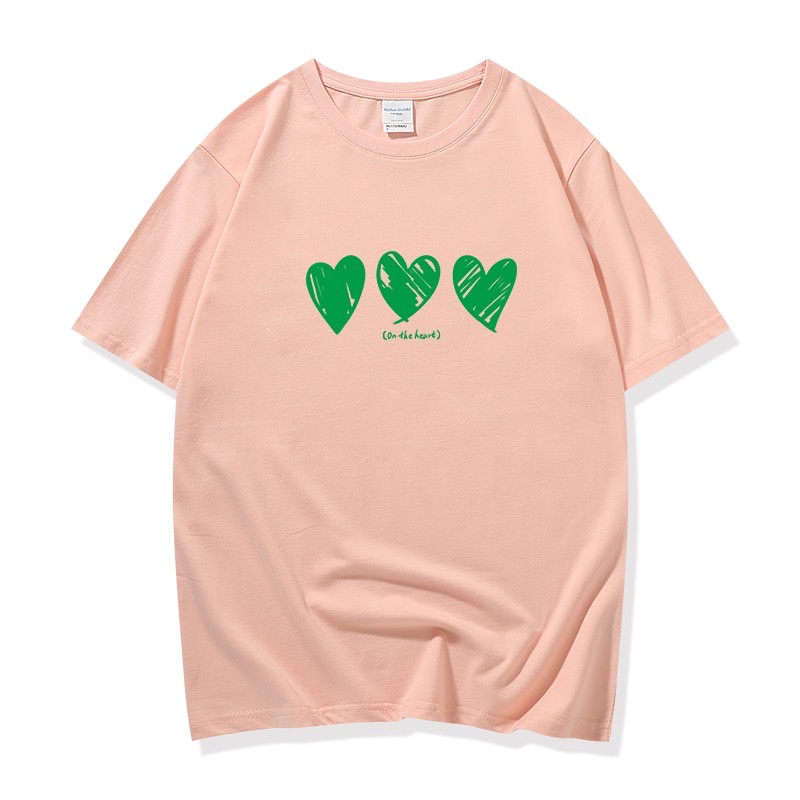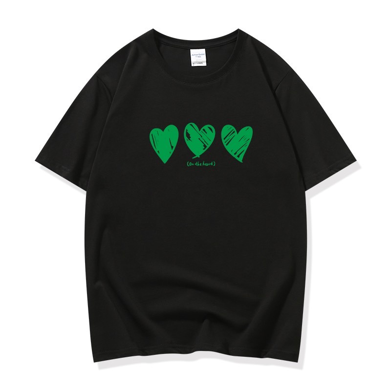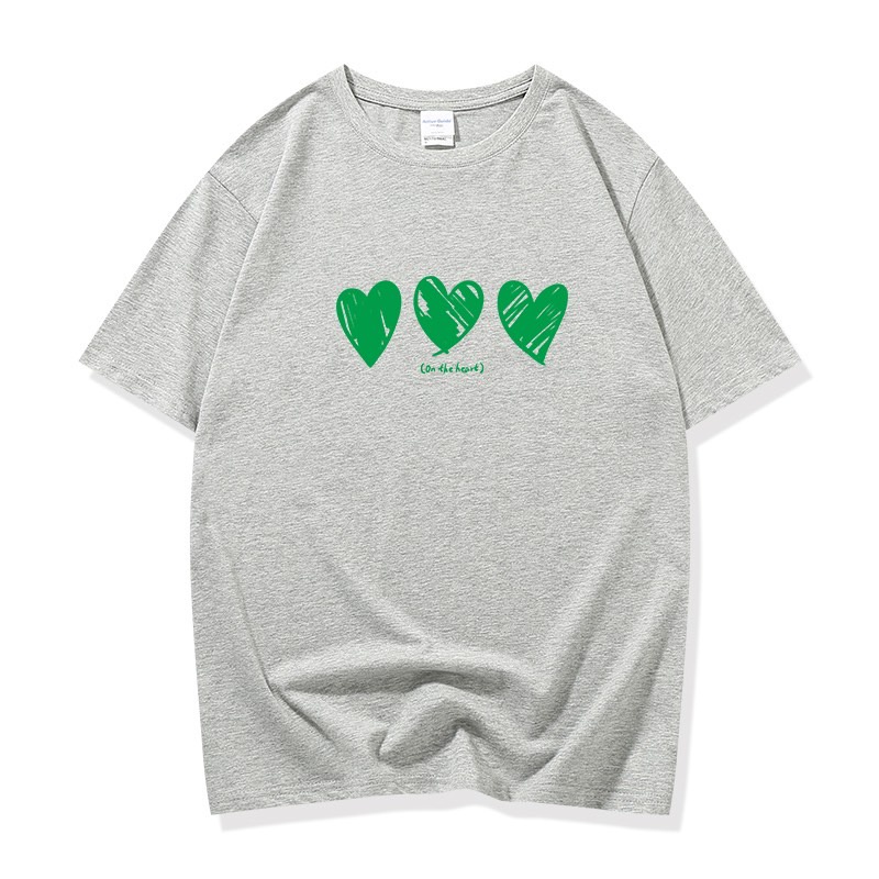 🍩MKL🍩เสื้อยืด คอกลม แขนสั้น ผ้านิ่ม พิมพ์ลายหัวใจสีเขียว น่ารักๆ สไตล์เกาหลี 🍩#9626