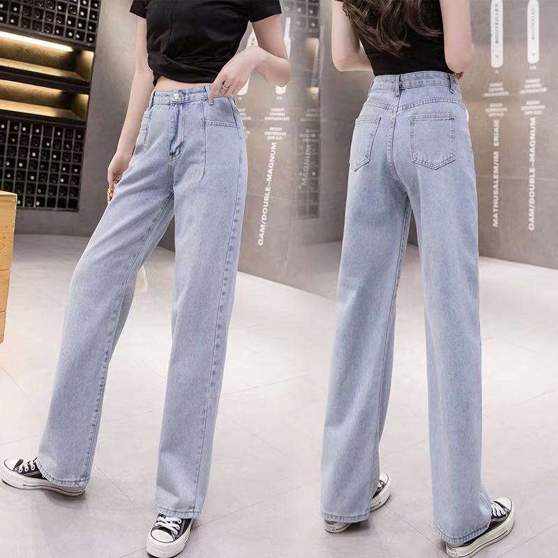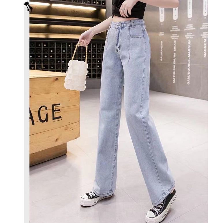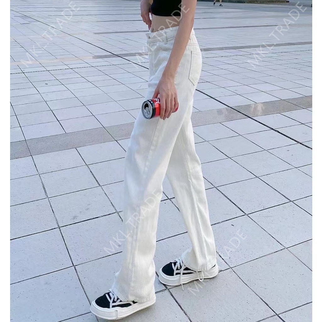 🌟MKL🌟พร้อมส่งในไทย กางเกงยีนส์เอวสูงผ้าไม่ยืด แฟชั่นสไตล์เกาหลี กางเกงขายาว ทรงกระบอกมี 3สีให้เลือก #8550