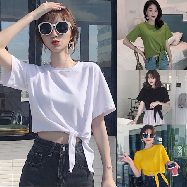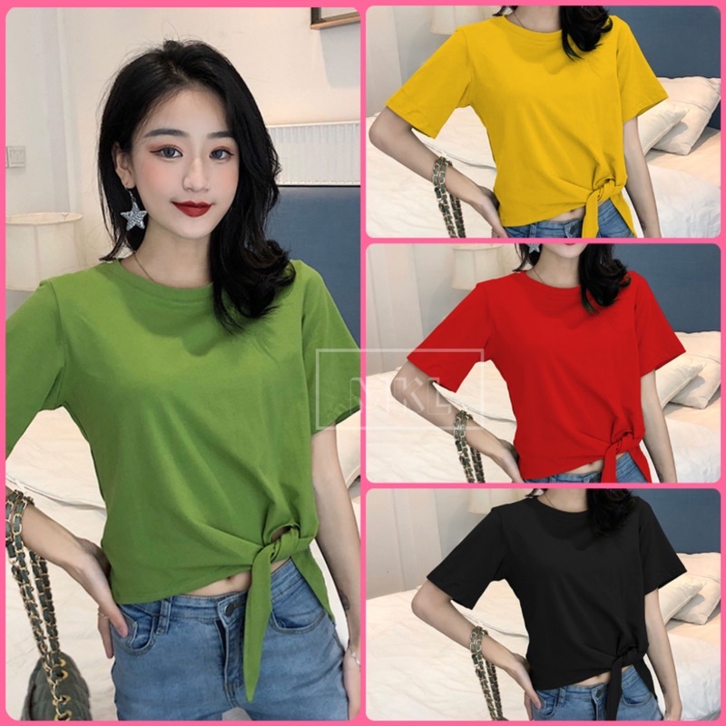 🌿🌺 MKL 🌺🌿 เสื้อยืดเอวลอยผูกโบว์ เสื้อแฟชั่นสไตล์เกาหลี 🎀 #9113