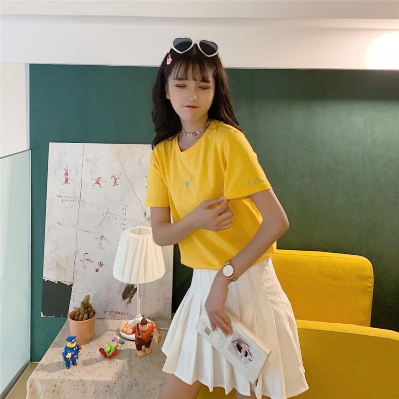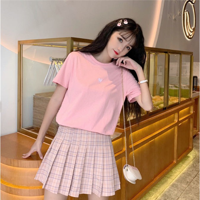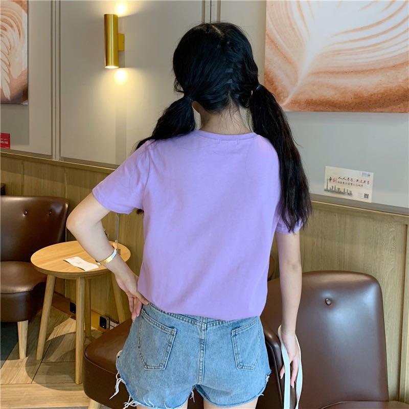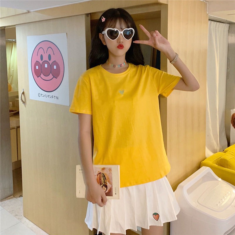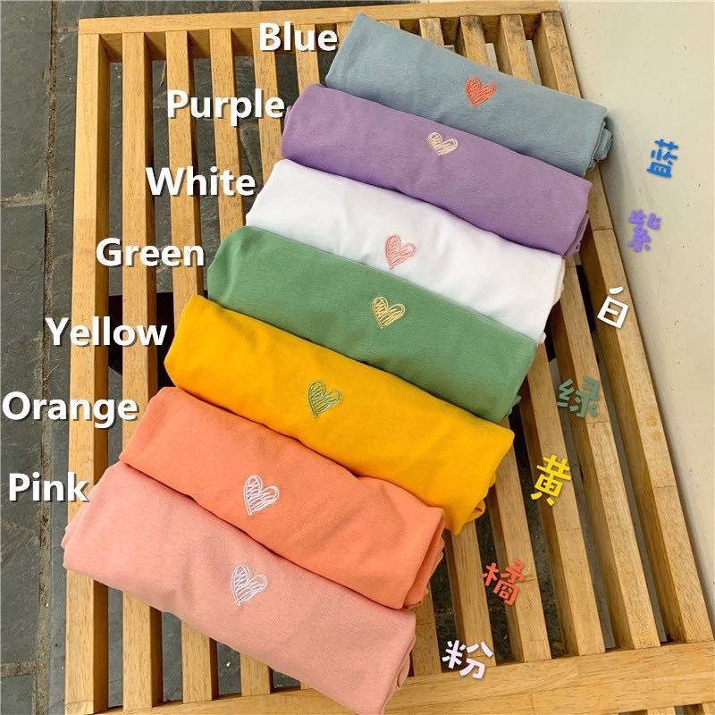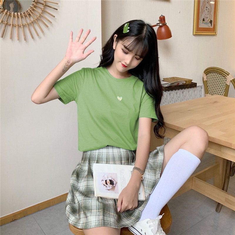 ✨ MKL ✨ เสื้อยืดแฟชั่นสตรีแขนสั้นคอกลมปักลายหัวใจทรงหลวม #9117
