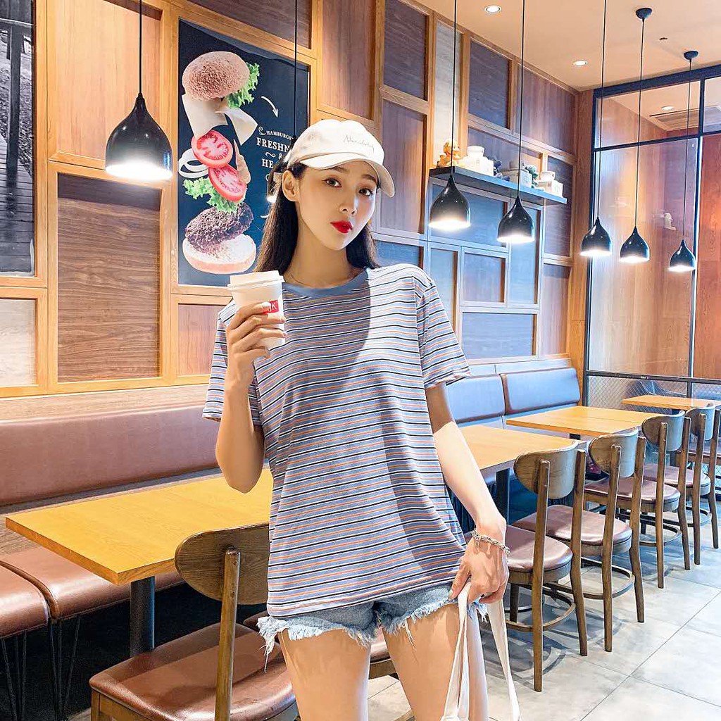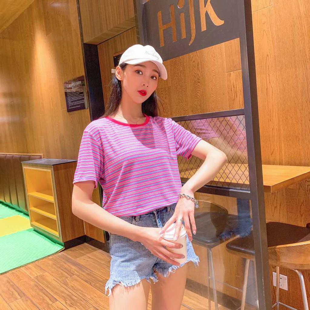 👕🌈 MKL 🌈👕 เสื้อยืดคอกลม แขนสั้น ลายทางสไตล์วินเทจ เสื้อยืดลำลอง ผ้าใส่สบายมีให้เลือก5สี🚚🚚#9304