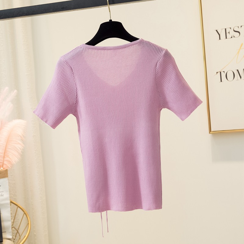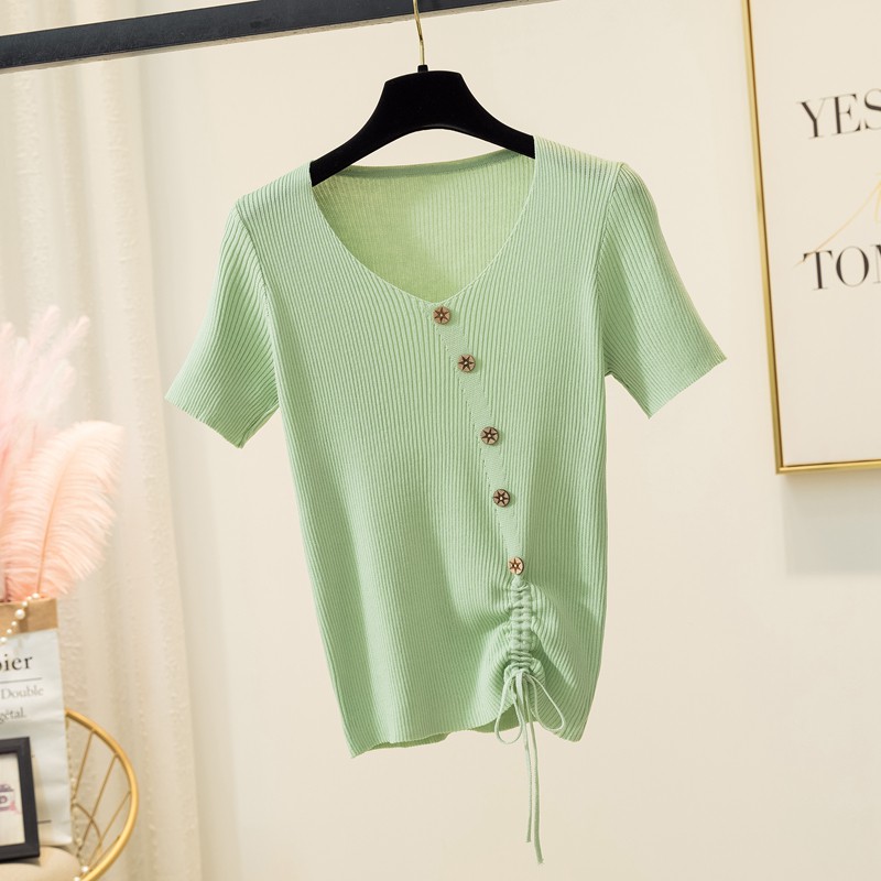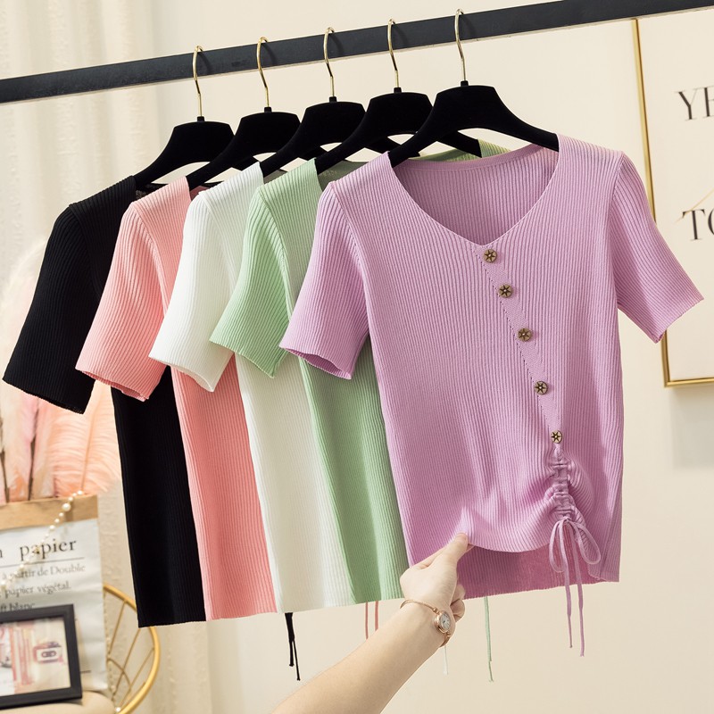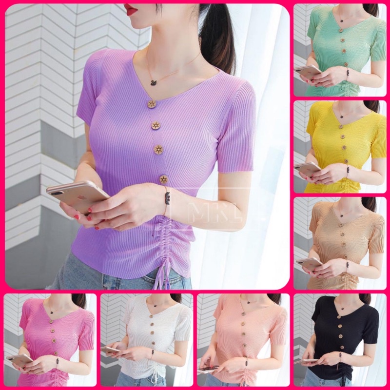 ✨MKLเสื้อคอวีแขนสั้น เสื้อยืด แต่งกระดุมด้านหน้า ดูน่ารักมาก มีหลายสีสุด ๆ แถมเนื้อผ้านิ่มเวอร์ #A070