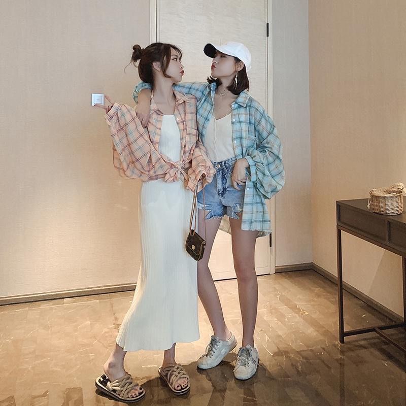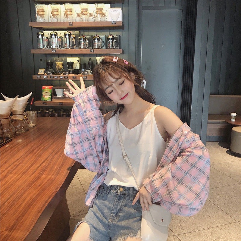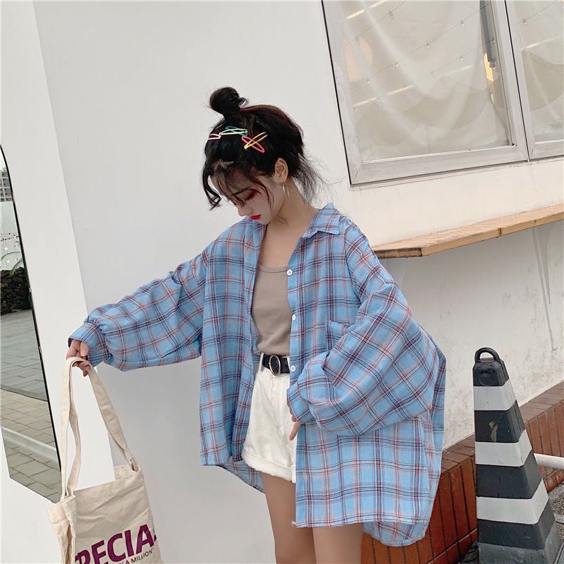 🌟MKL เสื้อเชิ้ตลายสก็อต วินเทจ สีสันสดใส #8668