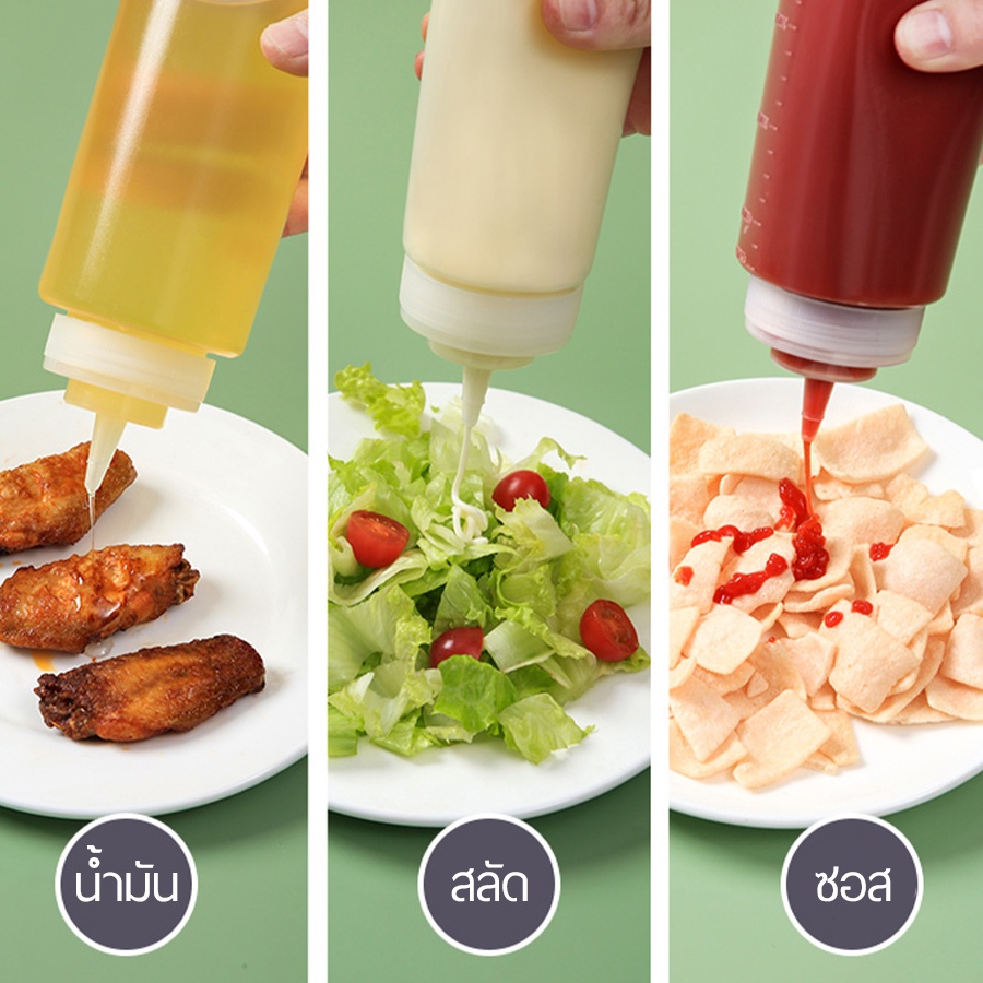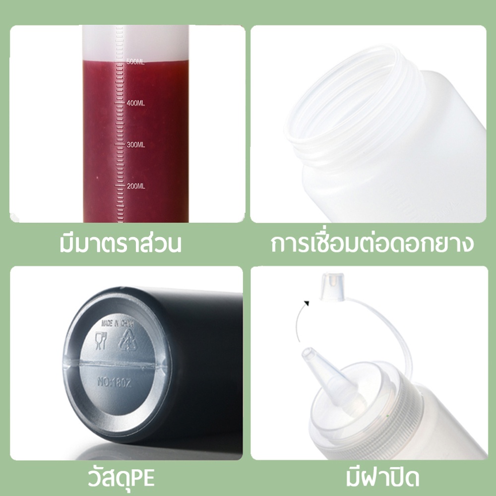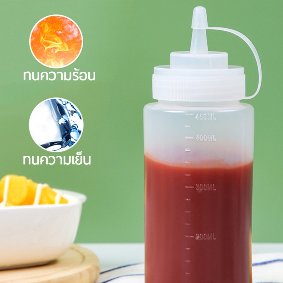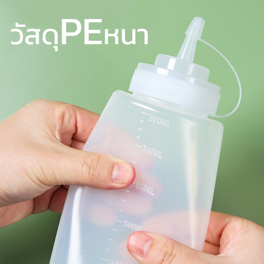 ขวดซอส ขวดบีบ มีฝาปิด พลาสติกขุ่น มีหลายขนาด 240/350/450/650/800/1000ml Sauce Bottle Tham coffee