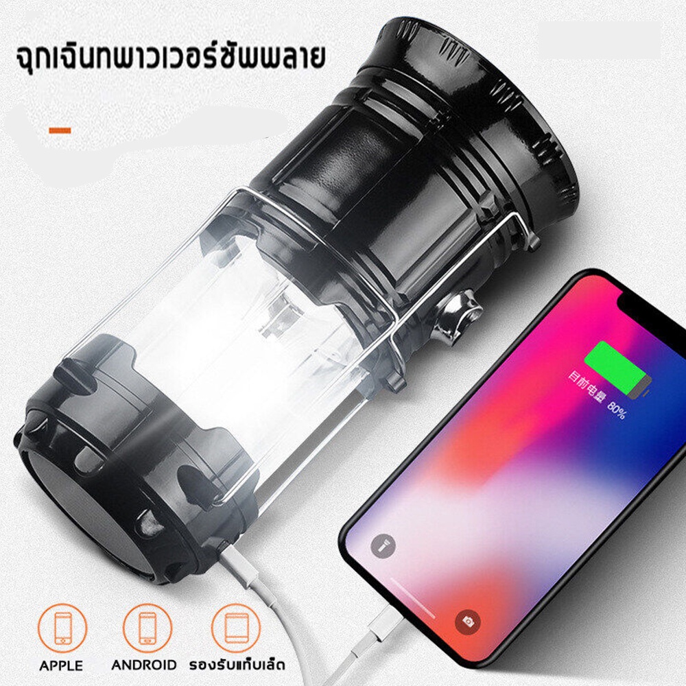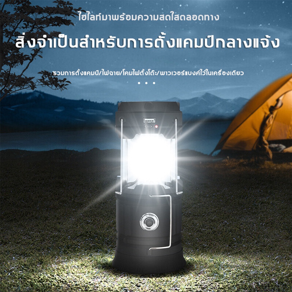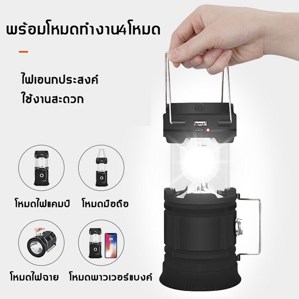 ไฟแคมป์ปิ้ง ไฟฉาย โคมไฟ โซล่า+ชาร์จไฟได้ 2in1 ชาร์จมือถือได้ โคมไฟ LED ตั้งแคมป์ ตกปลา เดินป่า Tham coffee