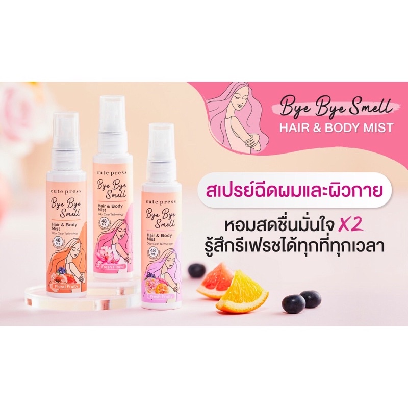 CUTE PRESS สเป รย์ฉีดผมและผิวกาย BYE BYE SMELL HAIR & BODY MIST 3 กลิ่น ขนาด 60 ml