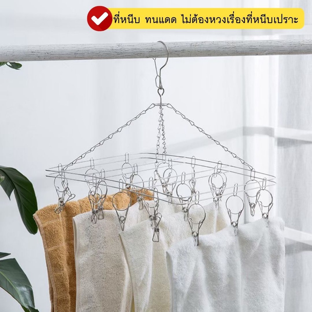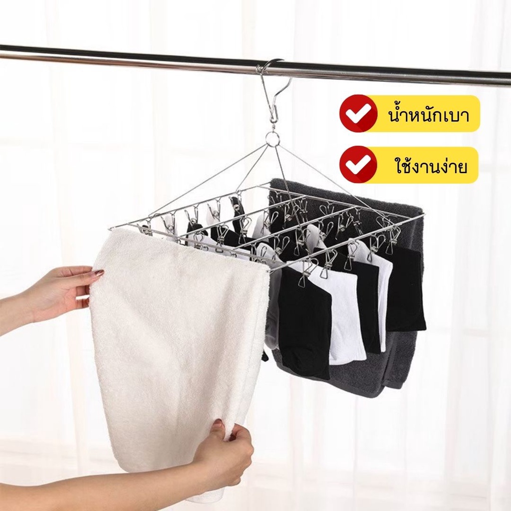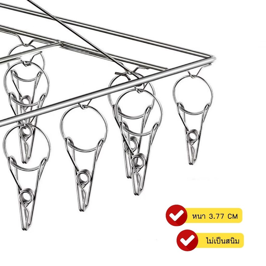 [ลูกค้าใหม่ 1บาท] S.M ที่หนีบผ้า พวงหนีบ แบบเหลี่ยม ผลิตจากสแตนเลสแท้ มีตะขอล็อค ขนาด 30*40 CM ปลีก/ ส่ง