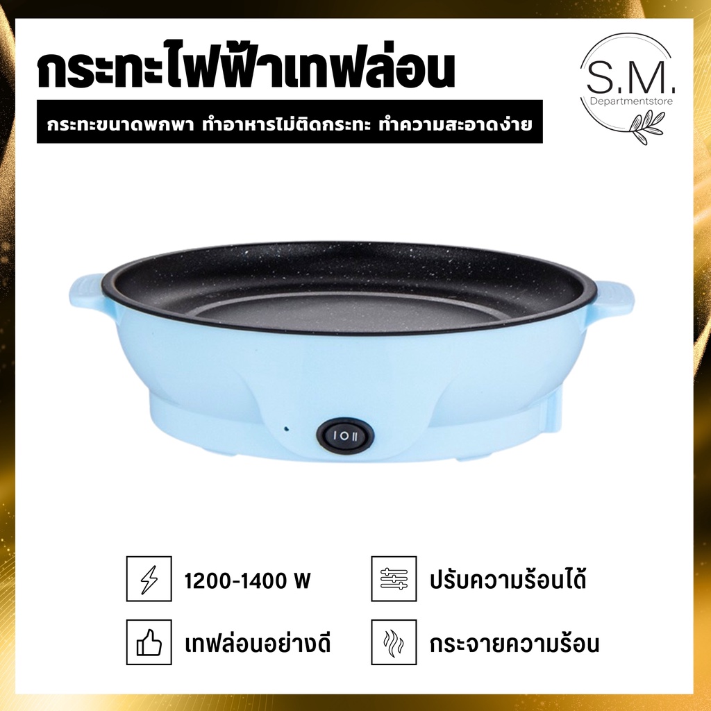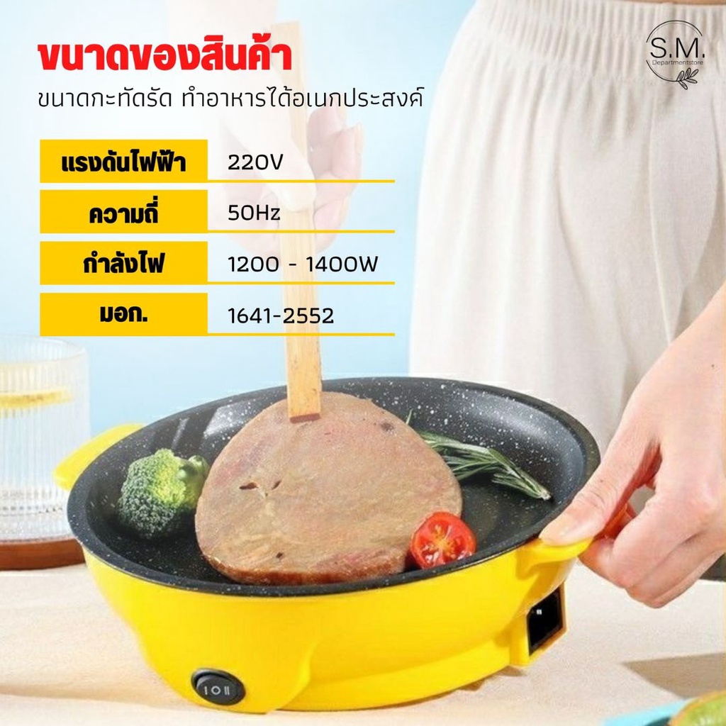 [ลูกค้าใหม่ 1บาท] S.M กระทะไฟฟ้า หม้อไฟฟ้า อเนกประสงค์ เคลือบเทปล่อน ขนาดพกพา ทอด ย่าง ผัด